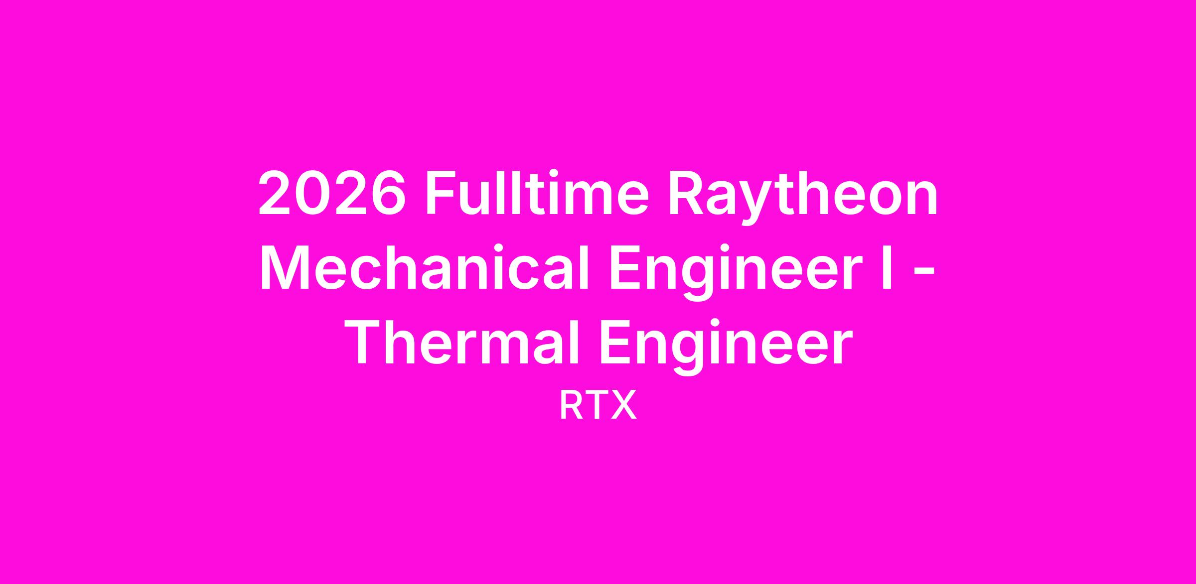 Raytheon is seeking an entry-level Thermal Engineer to join the MA&T Department. In this role you will get the opportunity to work on products throughout their lifecycle from initial design trade studies and proposals through qualification testing to enduring production support. Entry level engineers will join and learn from a team of 200+ engineers working in all areas of thermal engineering, and can expect a wide variety of assignments, from classical electronics thermal analyses to cutting edge test definition and execution including field test support at locations around the world.