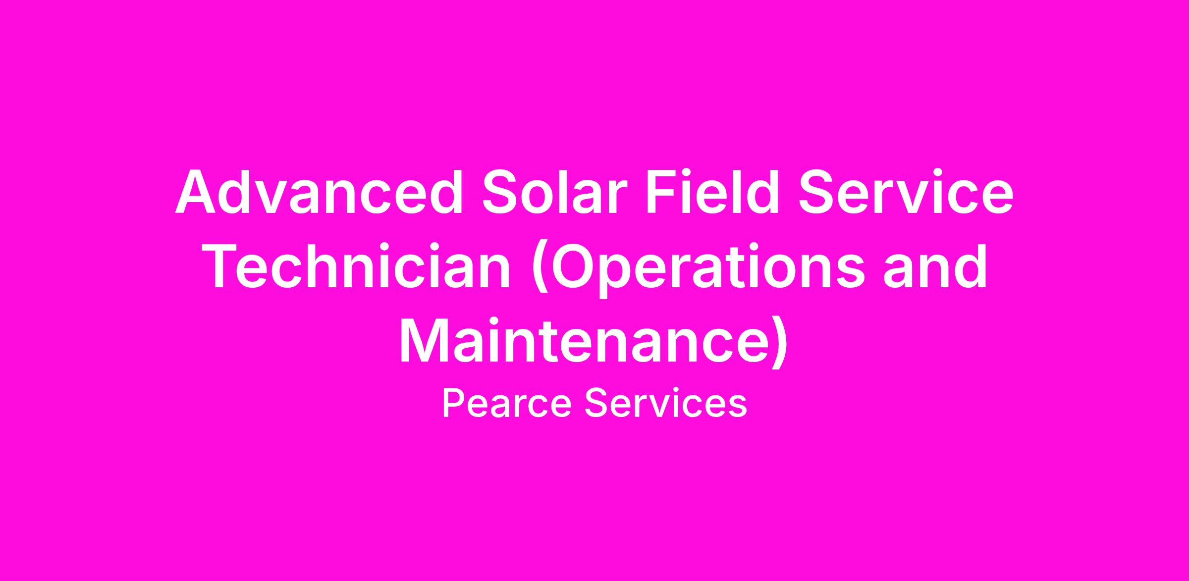 The Advanced Solar Field Service Technician (Operations and Maintenance) in the PEARCE Renewables Solar Operations and Maintenance Division performs tasks involving physical labor at solar energy sites near Bakersfield/Merced, California. The Solar Field Service Technician is responsible for the operation and maintenance (O&M) of solar power plants in accordance with established preventative and corrective maintenance standards while always maintaining safety and professionalism. These are local sites-candidates should reside within 50 miles of the Bakersfield/Merced, California areas.