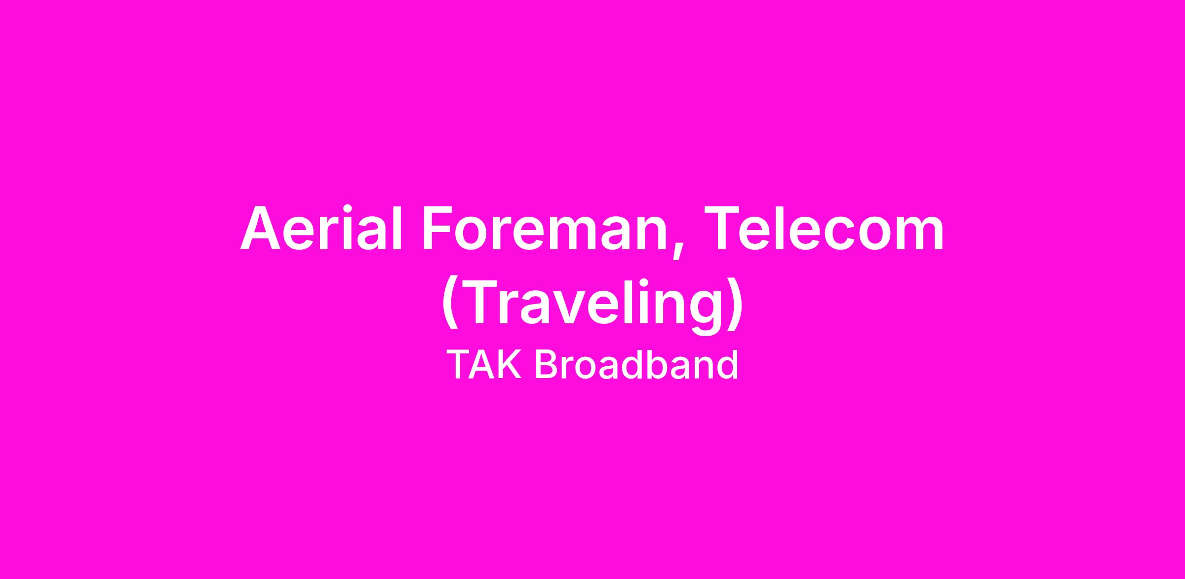 We are seeking a traveling Aerial Foreman to join our team. This position will require travel to job sites daily and be able to travel to other project sites as needed which could be up to +/-75% annually depending on where you live. We are currently hiring for projects in in Missoula, MT. In this role you will lead the aerial crew in daily work to safely complete jobs, install and/or repair aerial cable tv (CTV) coaxial and fiber cable and provide excellent customer service.