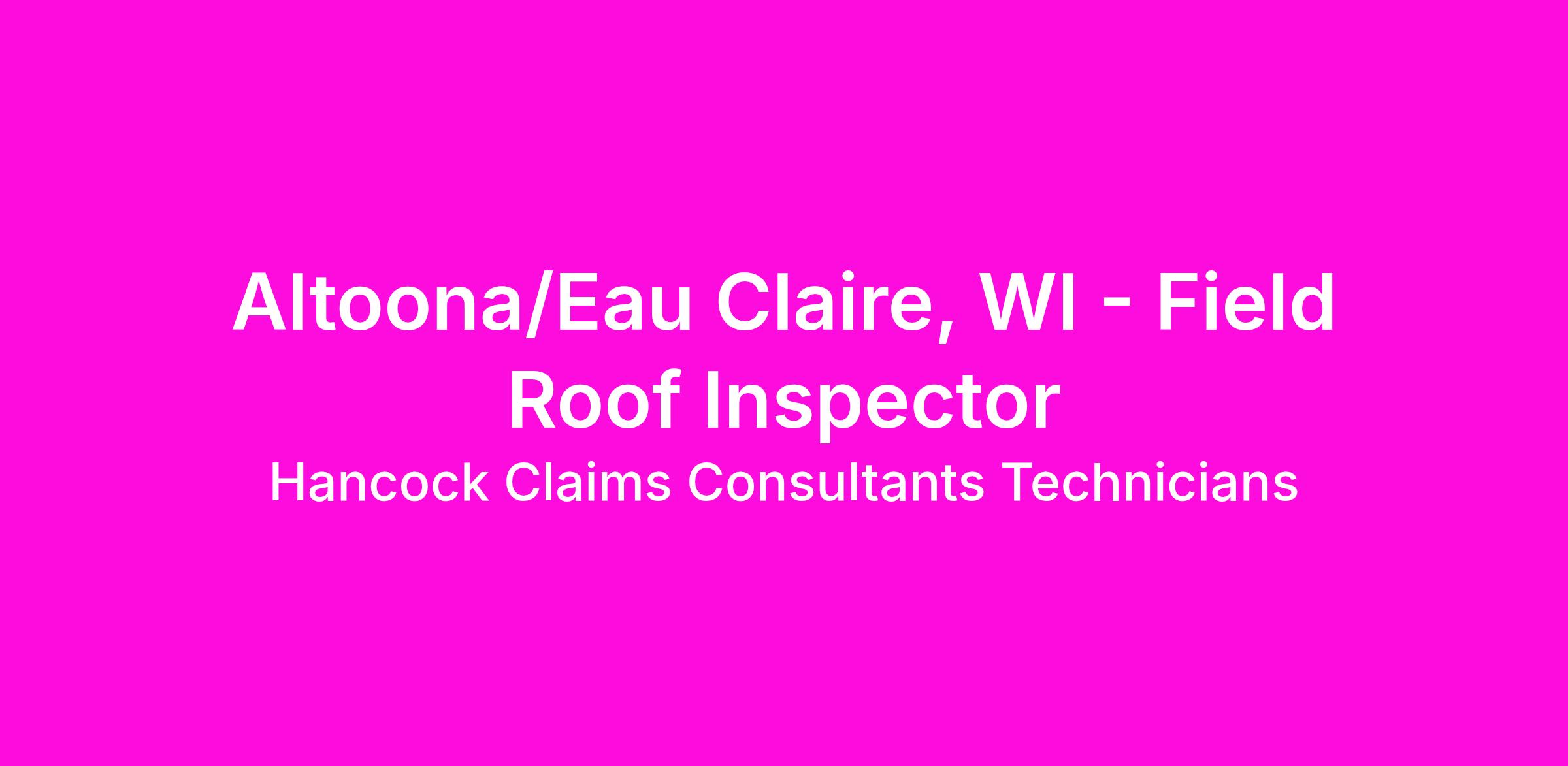 Altoona/Eau Claire, WI - Field Roof Inspector