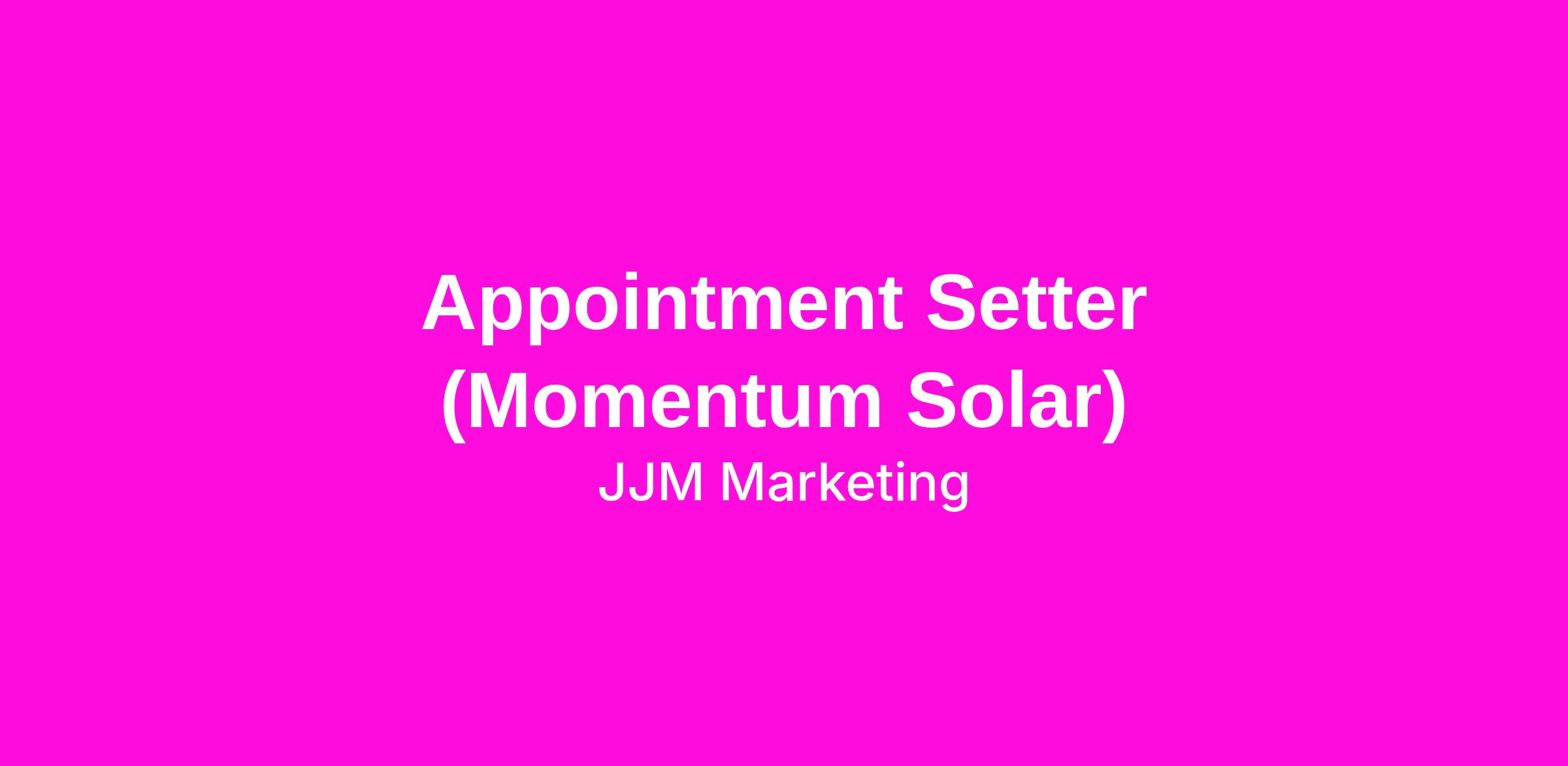 Are you a charismatic communicator with a passion for renewable energy? Momentum Solar is thrilled to announce an opening for Appointment Setters who are eager to connect with potential customers and help them discover the benefits of solar energy. In this role, you'll play a pivotal part in driving our mission forward!