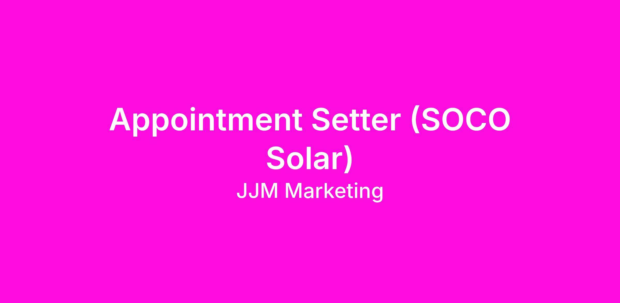 Are you someone who enjoys connecting with people and making their day better? At SOCO Solar, we’re looking for cheerful and motivated Appointment Setters to help us spread the word about solar energy. You’ll be the friendly voice that introduces our services to potential customers and sets up appointments with our sales team.