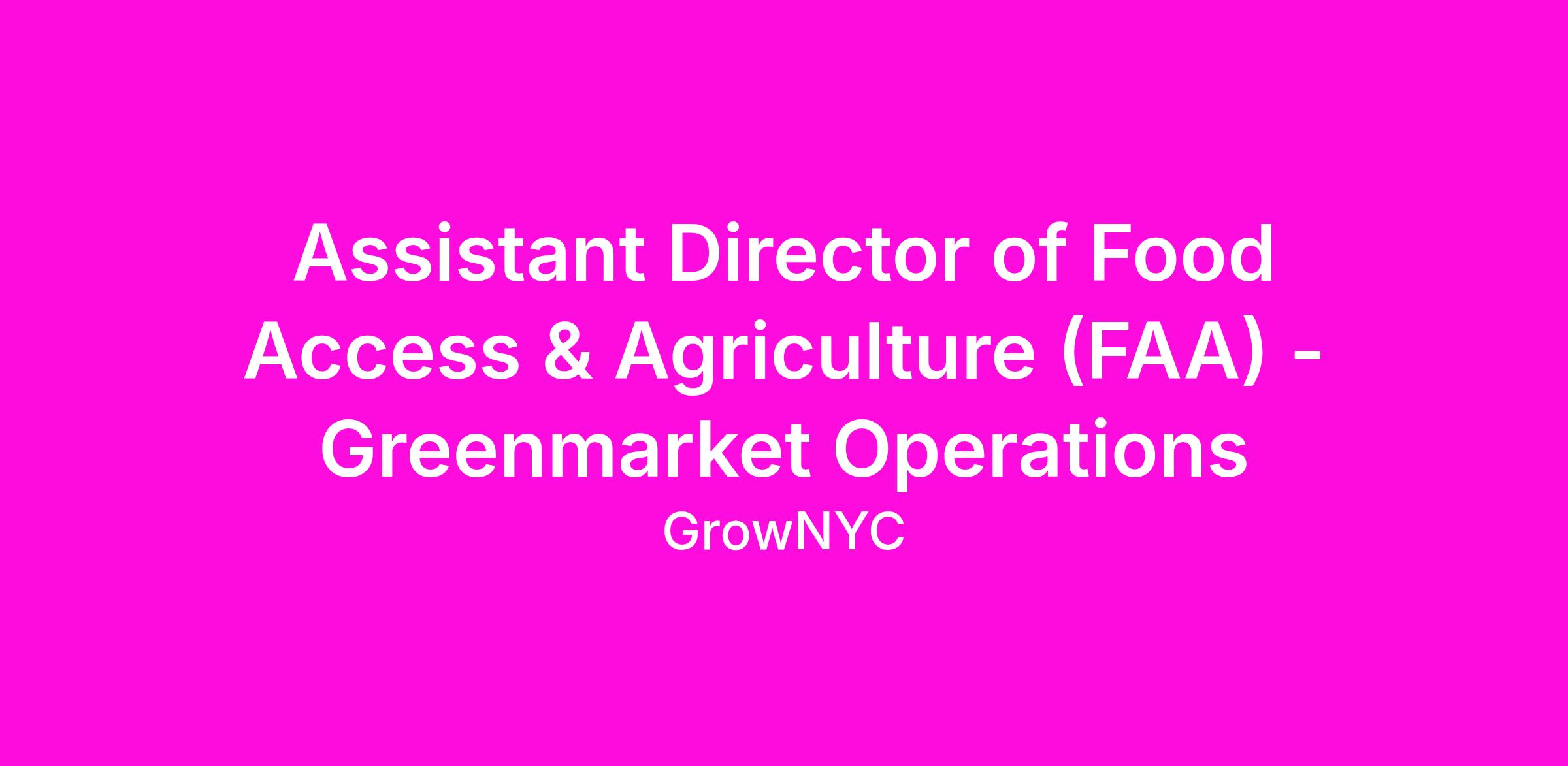 Assistant Director of Food Access & Agriculture (FAA) - Greenmarket Operations
