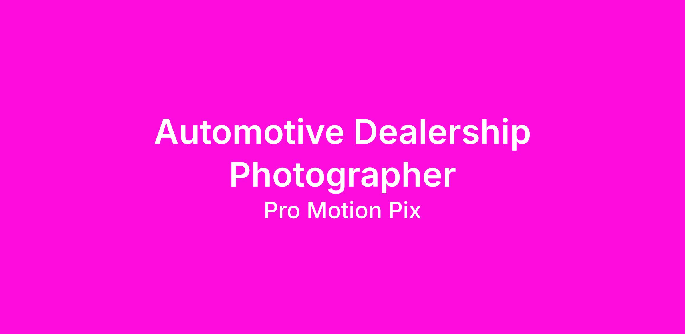 Pro-MotionPix is hiring a full-time Automotive Inventory Technician / Photographer to help manage, organize, and photograph dealership vehicle inventory for online listings.
