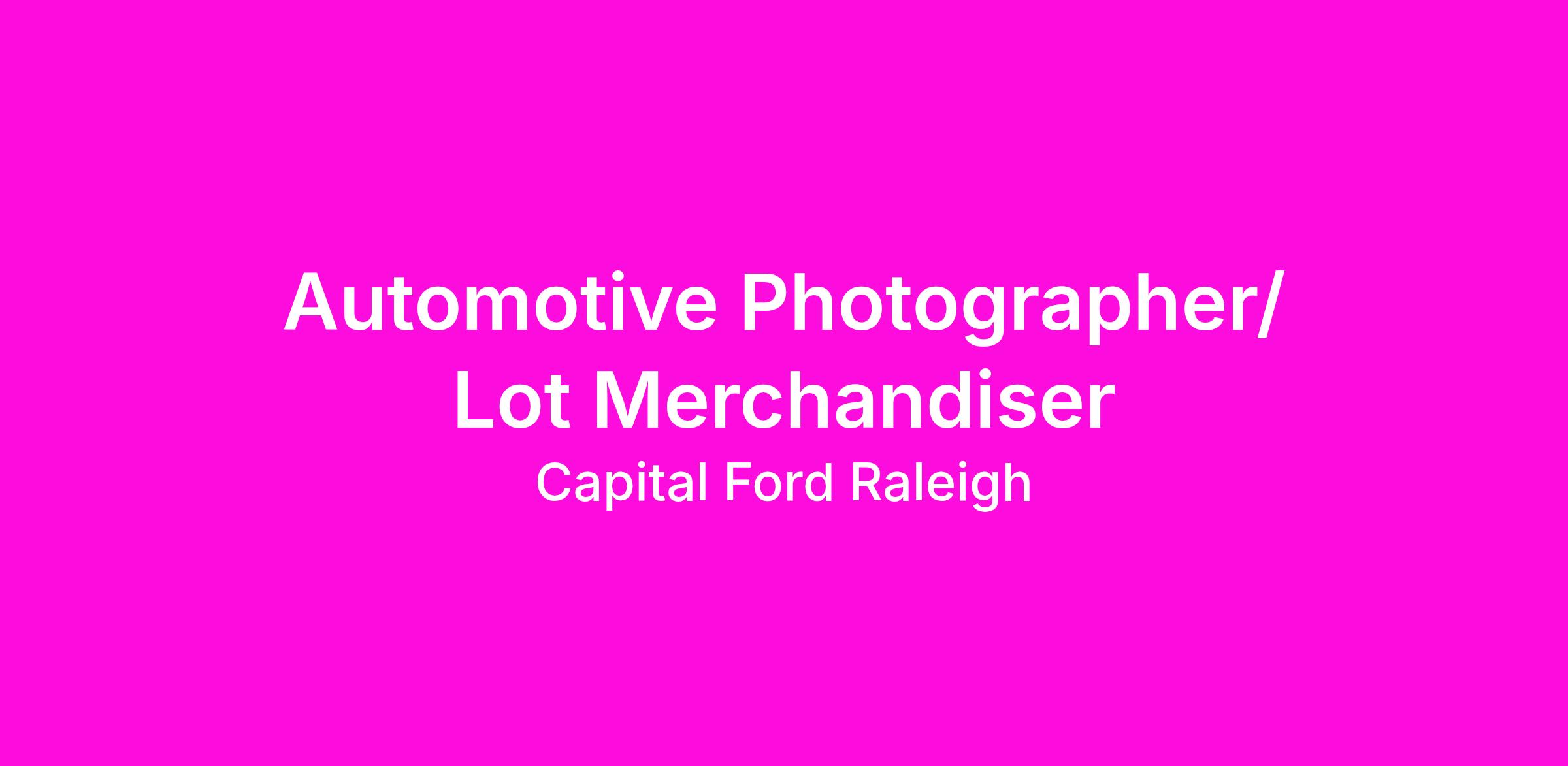 Capital Ford of Raleigh is on the hunt for a creative and detail-oriented Automotive Photographer/Lot Merchandiser to help showcase our inventory and elevate our customer experience. If you love photography, working outdoors, and making vehicles look their absolute best, this is the role for you! You'll be snapping photos, arranging inventory, adding decals and flags, and helping ensure every car on our lot is picture-perfect.