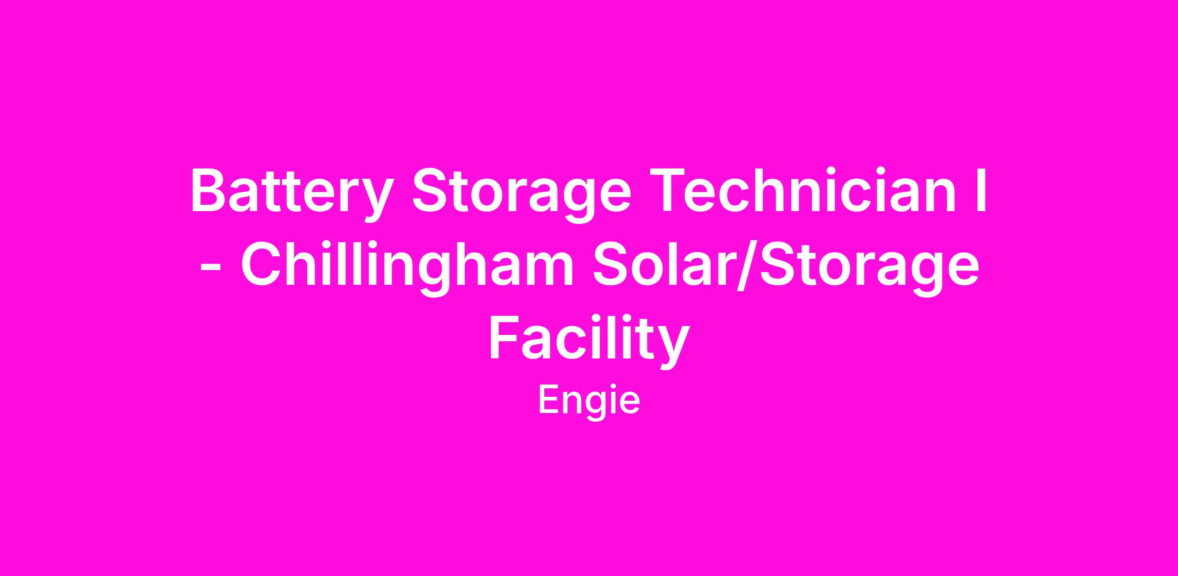 ENGIE North America is hiring a Battery Energy System Storage (BESS) Tech I, for our Chillingham Solar/Storage Facility in Rogers, TX. You will be responsible for executing field response for reactive and planned maintenance activities of select operating standalone battery assets. You may be required to assist solar technicians with repairing, troubleshooting, and completing technical repair work orders for solar panels as needed.