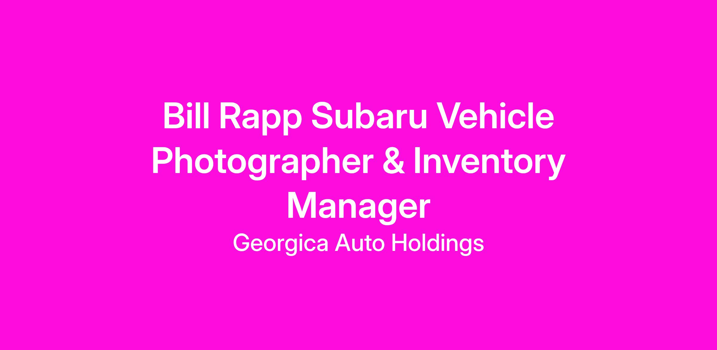 Bill Rapp Subaru in Syracuse, NY is seeking a vehicle photographer and inventory manager to help keep our vehicle inventory organized, clean, and ready for sale or service. This role blends hands-on physical work with inventory tracking and dealership support duties. Also will be taking photos and descriptions of vehicles. The ideal candidate is dependable, detail-oriented, tech and computer savvy, and comfortable working both indoors and outdoors.
