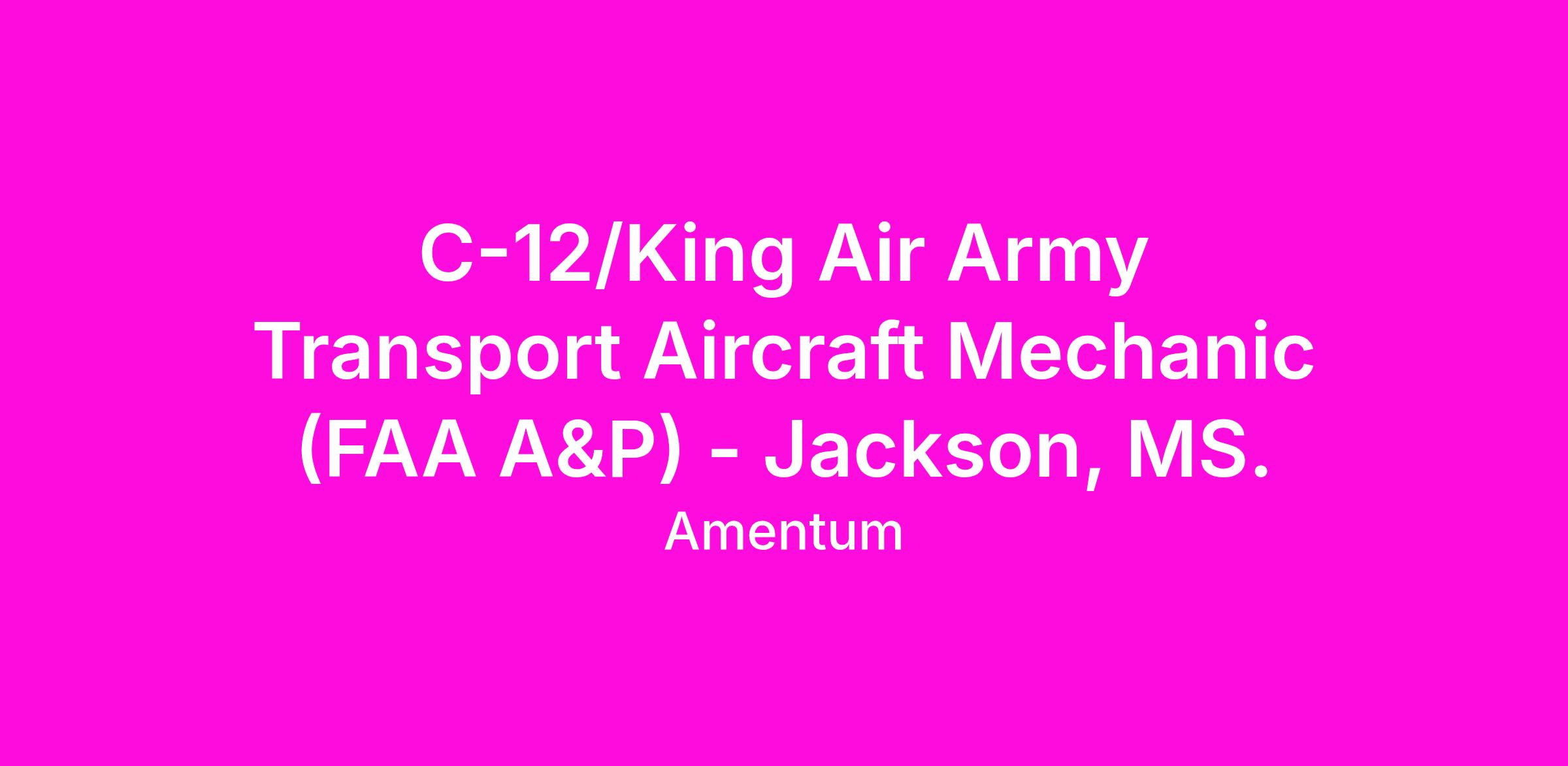 The C-12/King Air Army Transport Aircraft Mechanic (FAA A&P). Performs organizational and intermediate level maintenance on C-12/King Air (200/350/1900) aircraft.