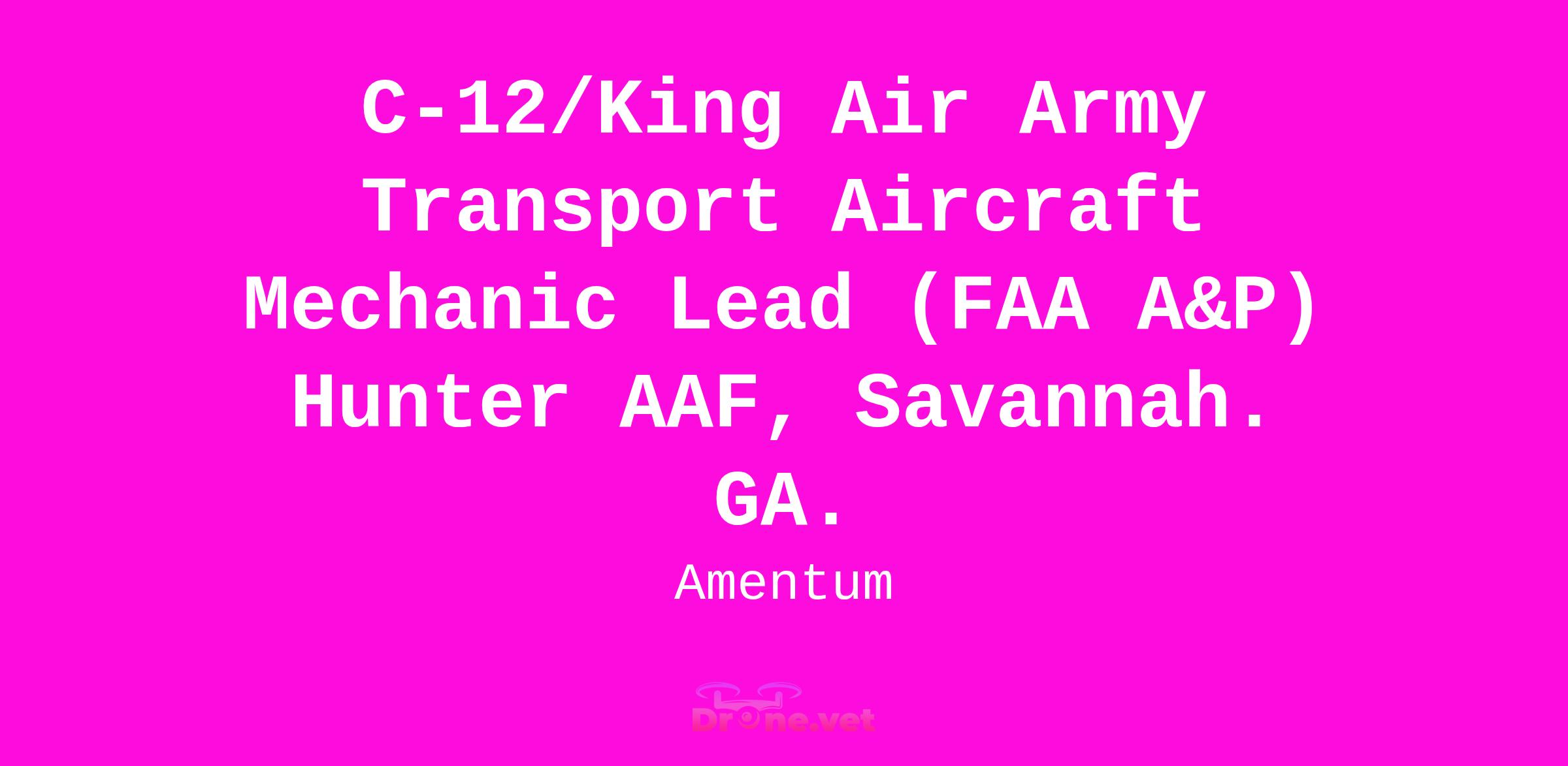 Must have Army C-12 / King Air (200, 350, 1900) hands-on A&P mechanic experience to include, flightline experience.