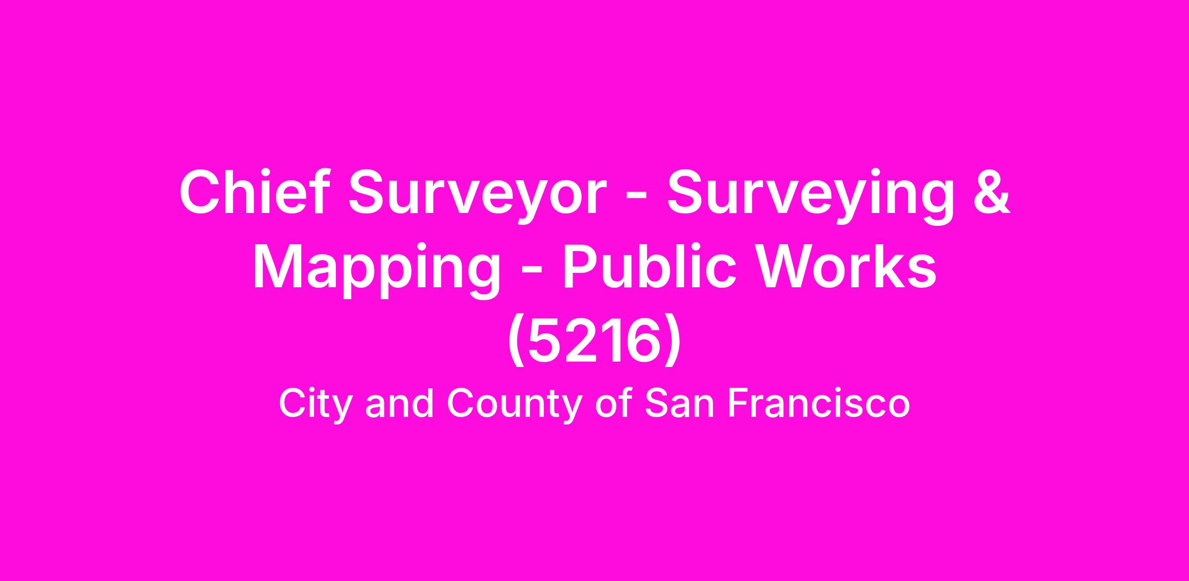 This is an opportunity to join the leadership team of the Bureau of Surveying & Mapping and lead field and office survey operations in support of a vast array of City projects. Your work may include performing and directing boundary, topographic, monument preservation and control surveys, subdivision map review, legal lot and title analysis, and complex right-of-way dedication and vacation processes. You will join a team of dedicated, experienced surveyors, associates and support staff working together to provide the highest level of service to the public and the City & County of San Francisco.