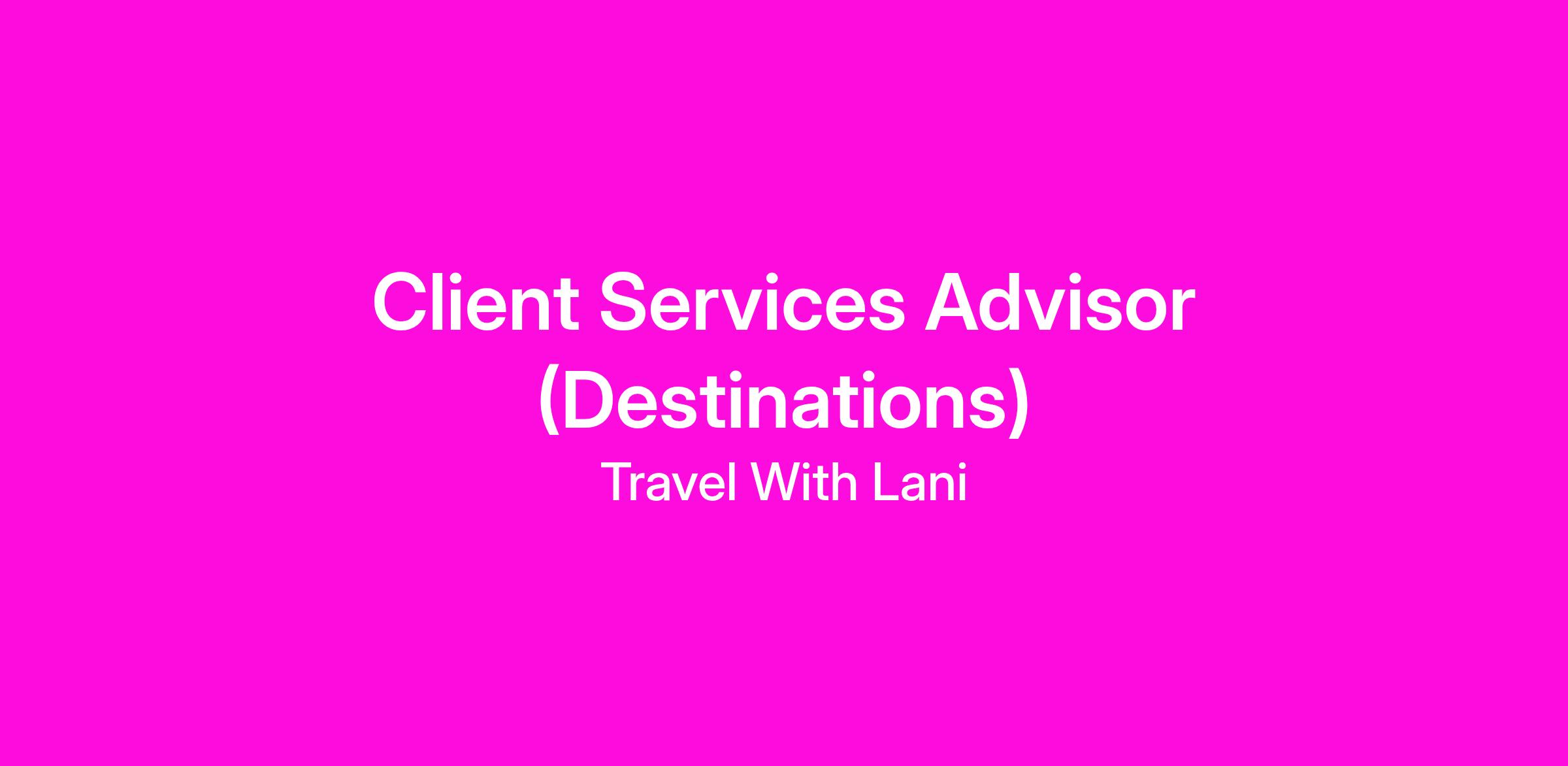We are hiring Client Services Advisors (Destinations) to ensure clients have seamless travel experiences. This is a remote role with training and career opportunities.