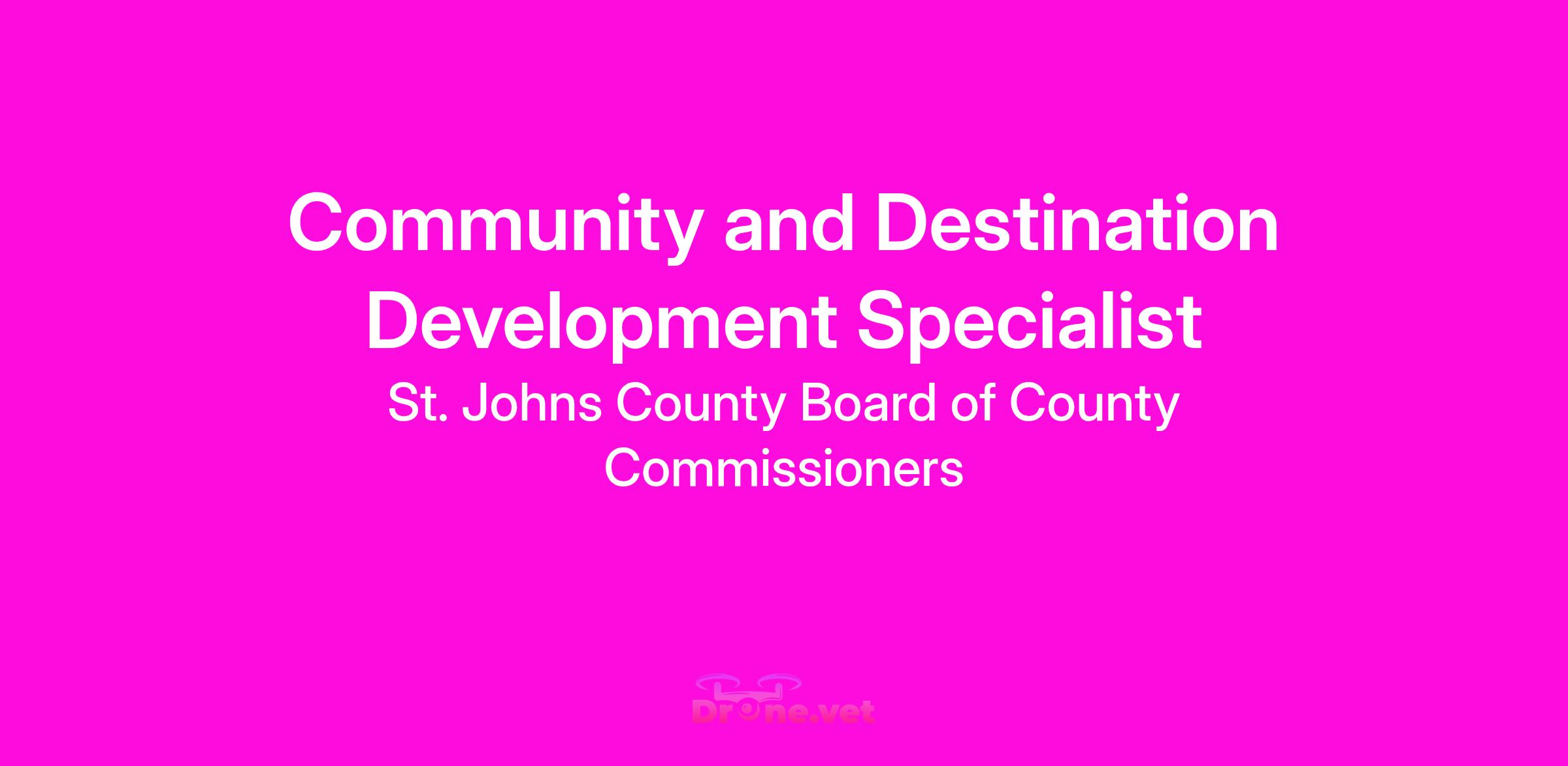 St. Johns County Board of County Commissioners is seeking a Community and Destination Development Specialist for our new Department of Community and Destination Development whose headquarters are located in beautiful St. Augustine, Florida.