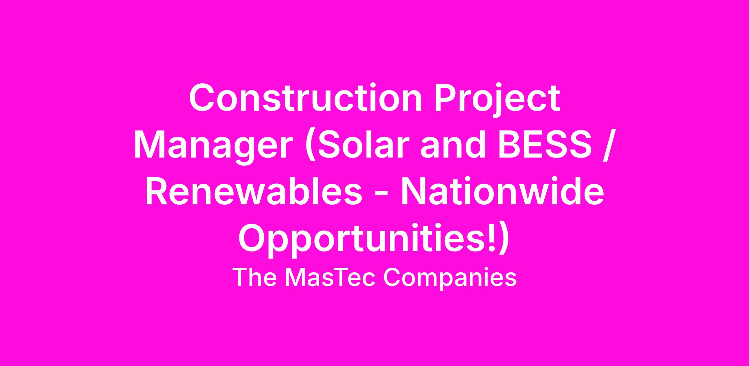 Construction Project Manager (Solar and BESS / Renewables - Nationwide Opportunities!)