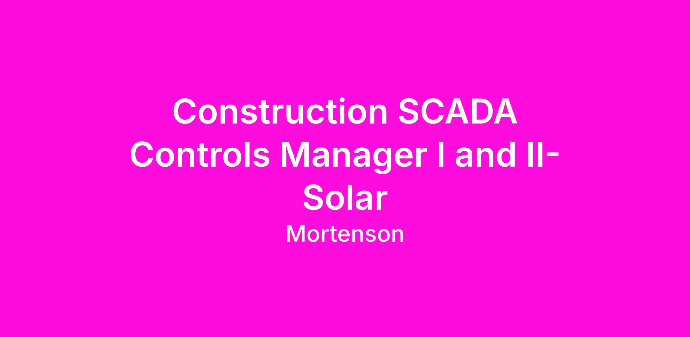 Mortenson is currently seeking an experienced SCADA Controls Manager I or II to join our Solar group responsible for providing project management and design leadership, as well as effective customer relationship management with new and existing customers. Support our continued growth by aiding in the development, roll-out and execution of early-stage Solar planning and development service offerings and providing technical support throughout the testing and commissioning of Solar projects.