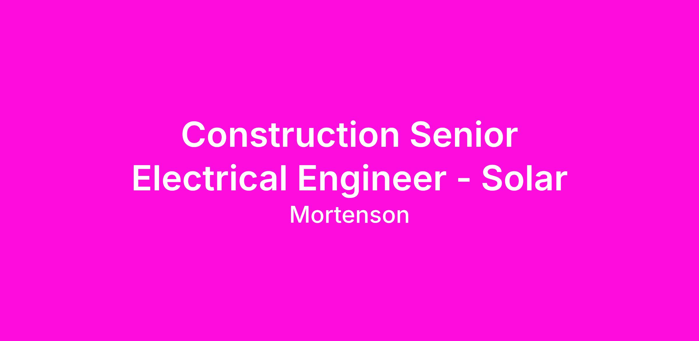 Mortenson is currently seeking a Senior Electrical Engineer to join our Solar group that will provide electrical technical support throughout the entire construction project.