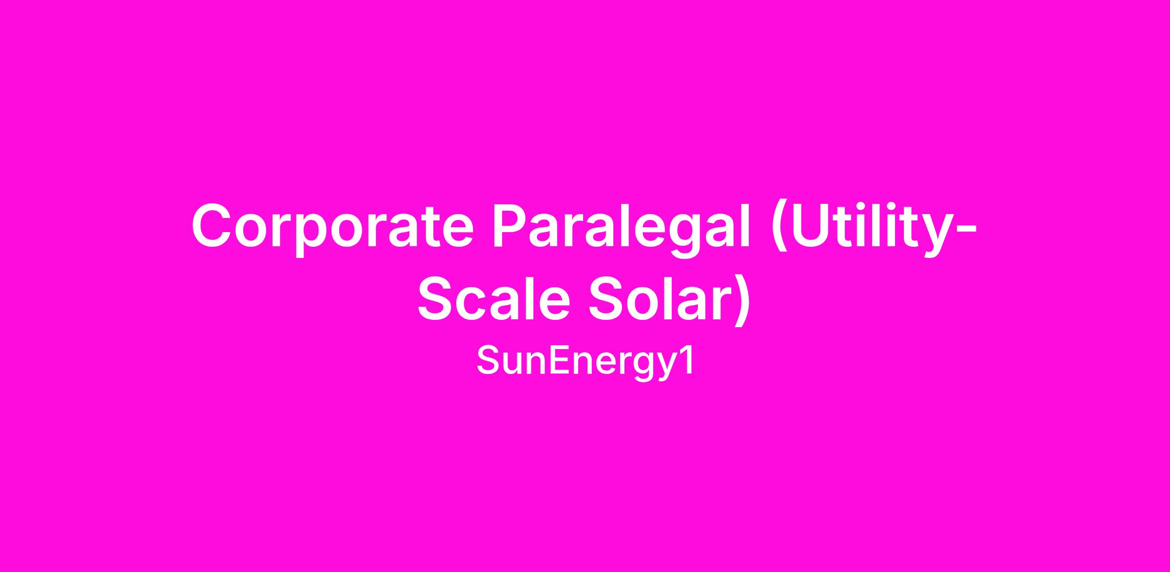 The Corporate Paralegal will support the Legal Department in managing corporate governance, entity formation and maintenance, contract administration, and regulatory filings for a utility-scale solar development company. This role will work closely with internal stakeholders across Development, Finance, Accounting, and Executive Leadership to ensure legal and corporate compliance across a multi-entity structure, including project-level subsidiaries and joint ventures.