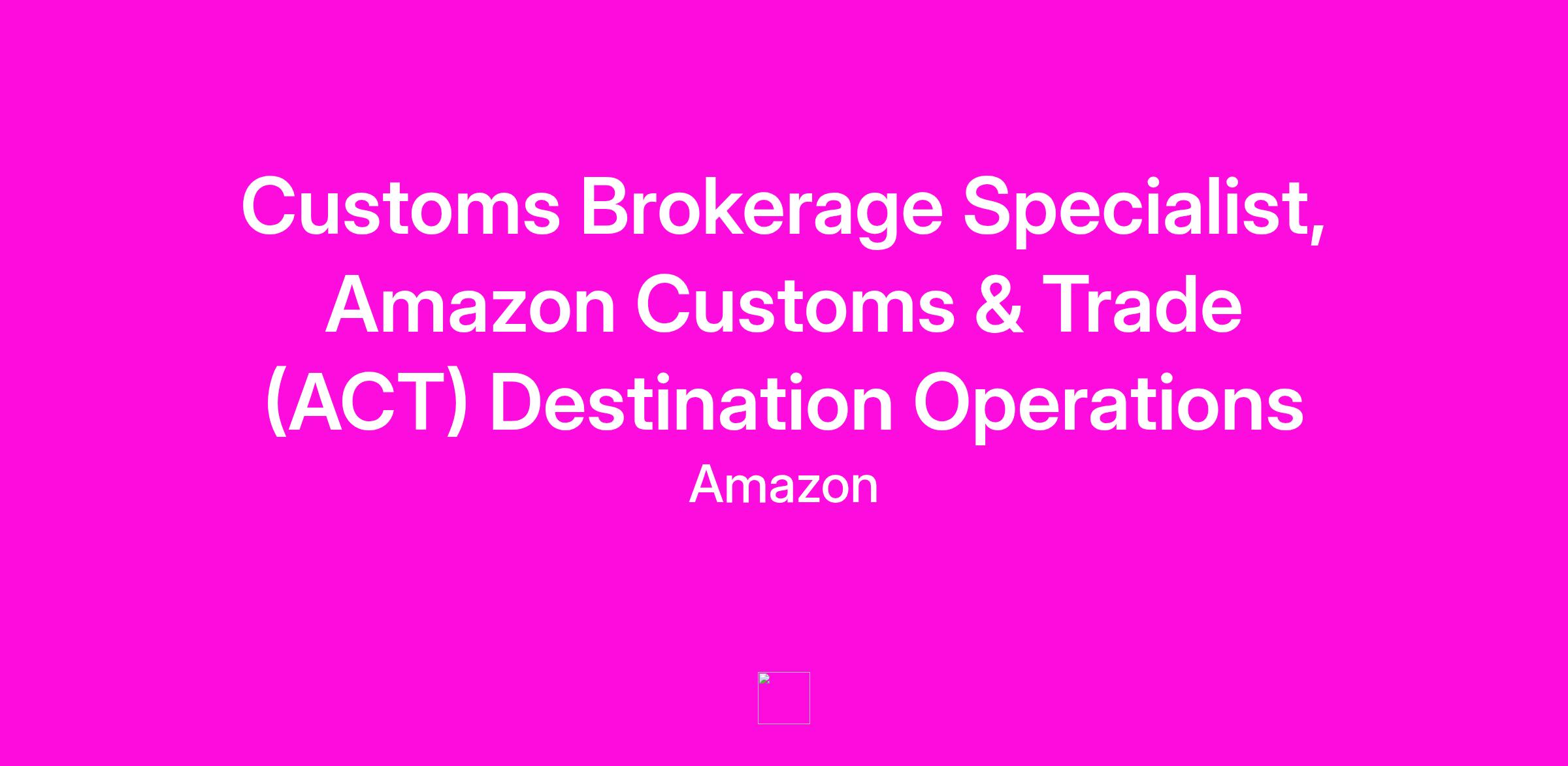 At Amazon, our mission is to be Earth's most Customer-centric company. The Amazon Customs & Trade (ACT) team delivers comprehensive customs brokerage services for our customers.