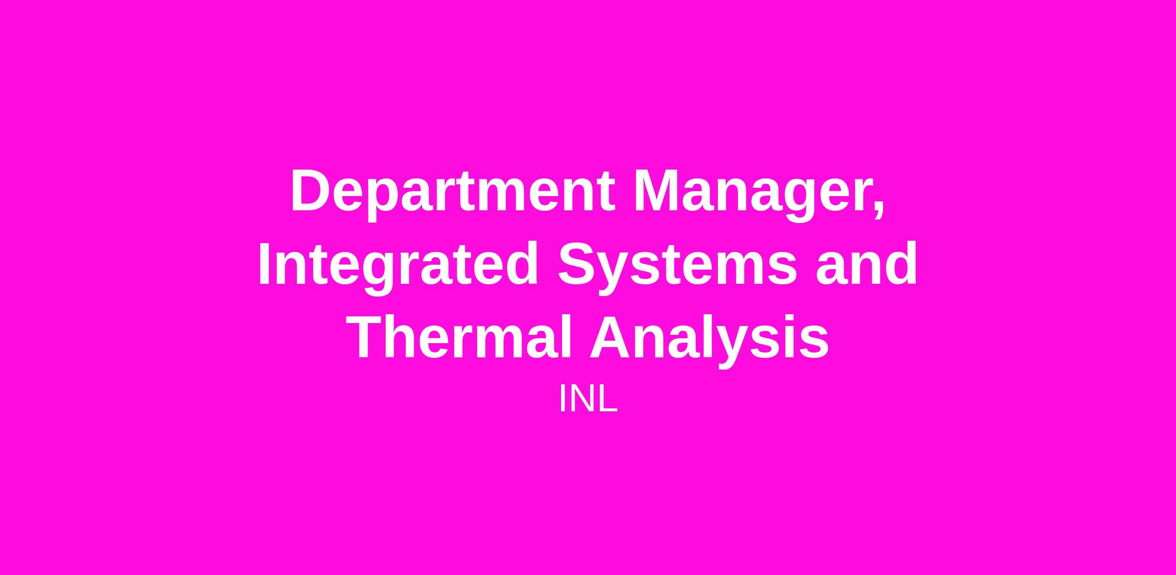 Idaho National Laboratory is hiring a Department Manager, Integrated Systems and Thermal Analysis to work in our Energy, Environment Science and Technology (EES&T) Department. Our team works a 9x80 schedule located out of our Idaho Falls facility with every other Friday off. You will report to the Division Director for Integrated Energy Technologies.