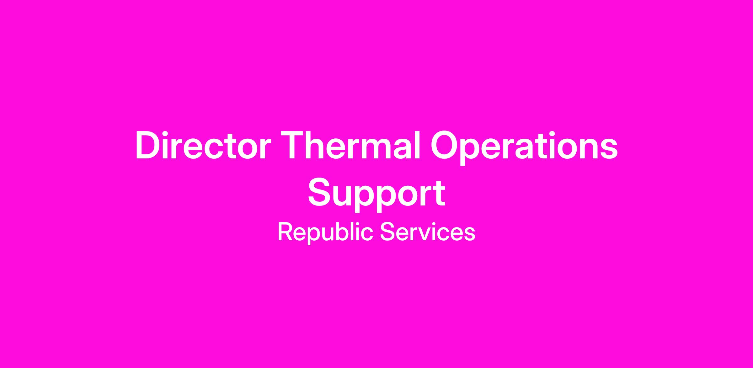POSITION SUMMARY: The Director Thermal Operations Support oversees the implementation, standardization, and optimization of thermal treatment facilities for hazardous and non-hazardous waste. The incumbent provides strategic and technical direction for Republic Services’ thermal operations, including thermal desorption, incineration, and related technologies. Responsibilities include managing safe, compliant, cost-effective operations, supporting waste-to-energy and PFAS destruction initiatives, and coordinating across functions with finance, EHS, operations, engineering, and HR.