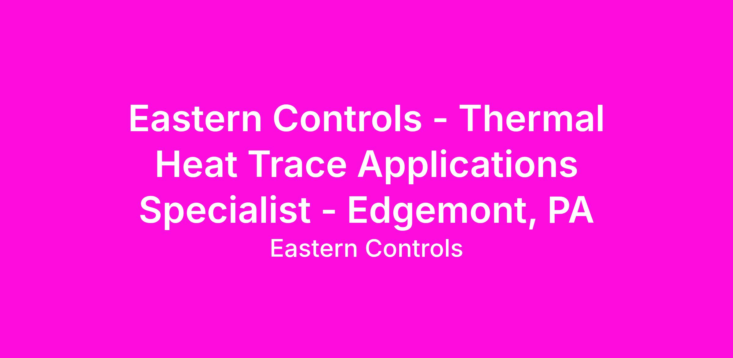 Eastern Controls Inc., a manufacturer's representative partner of Endress+Hauser Inc. is seeking a Thermal Applications Specialist. The position is a highly technical engineering role responsible for designing, selecting, and applying thermal heat trace applications. This role focuses on engineering support, technical expertise, and education to ensure that ECI delivers best-in-class solutions. The Thermal Applications Specialist is a highly technical engineering role responsible for designing, selecting, and applying thermal heat trace applications. This role focuses on engineering support, technical expertise, and education to ensure that ECI delivers best-in-class solutions.