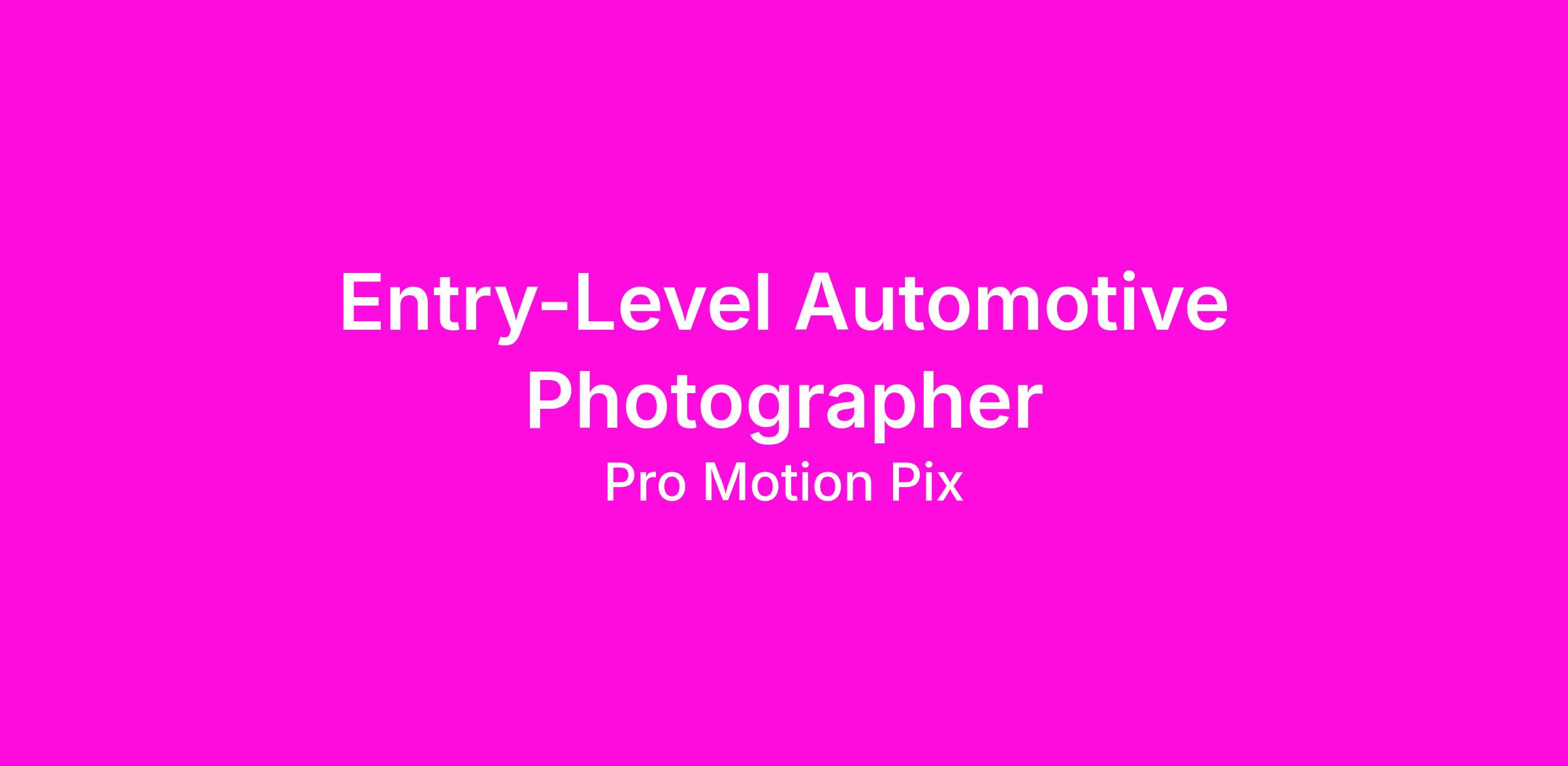 Pro-MotionPix is looking for a part-time Automotive Dealership Photographer to join our team to photograph and video dealership vehicles for sale using a company issued iPhone.