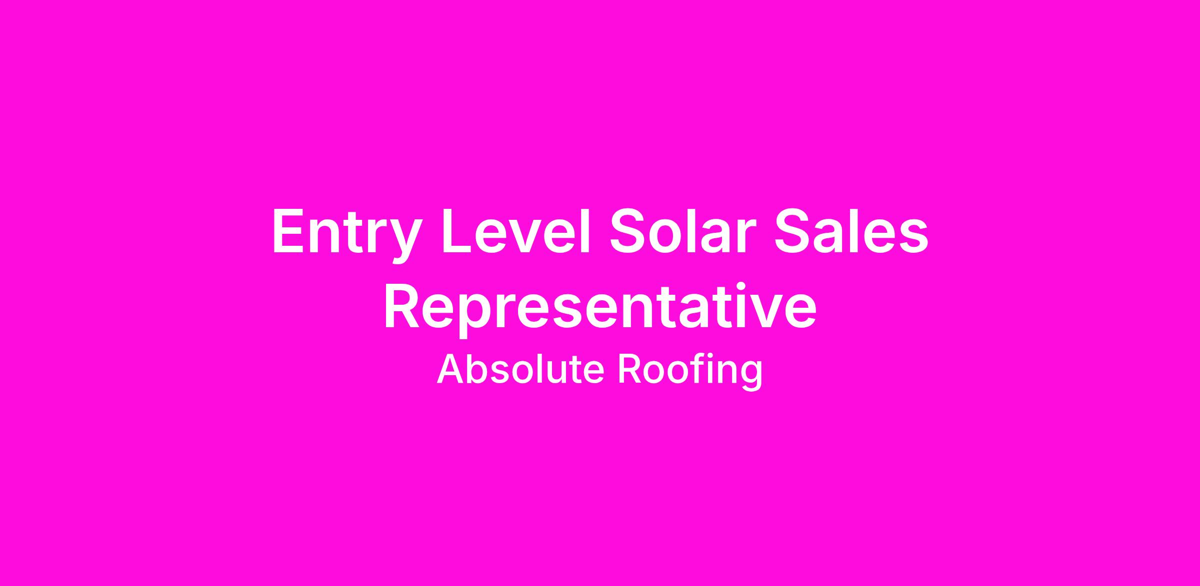 Entry Level Solar Sales Representative