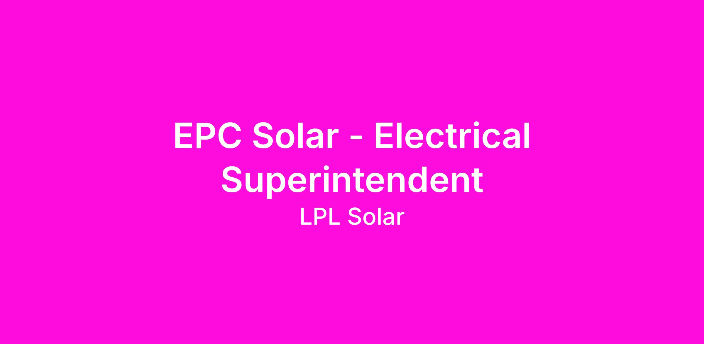High commitment to safety, quality, and schedulJob Title: Electrical Superintendent – Utility-Scale Solar EPC Location: Project-Based / Nationwide Travel Reports To: Electrical Project Manager / Project Director Employment Type: Full-TimePosition Summary The Electrical Superintendent is responsible for leading and executing all self-performed electrical scopes on utility-scale solar EPC projects. This role provides hands-on field leadership electrical crews and ensures electrical work is completed safely, efficiently, and in compliance with project specifications, NEC requirements, and company standards. This position plays a critical role in driving production, maintaining schedule milestones, and coordinating with civil, mechanical, and commissioning teams in a fast-paced EPC environment.Key Responsibilities Field Leadership & Production
