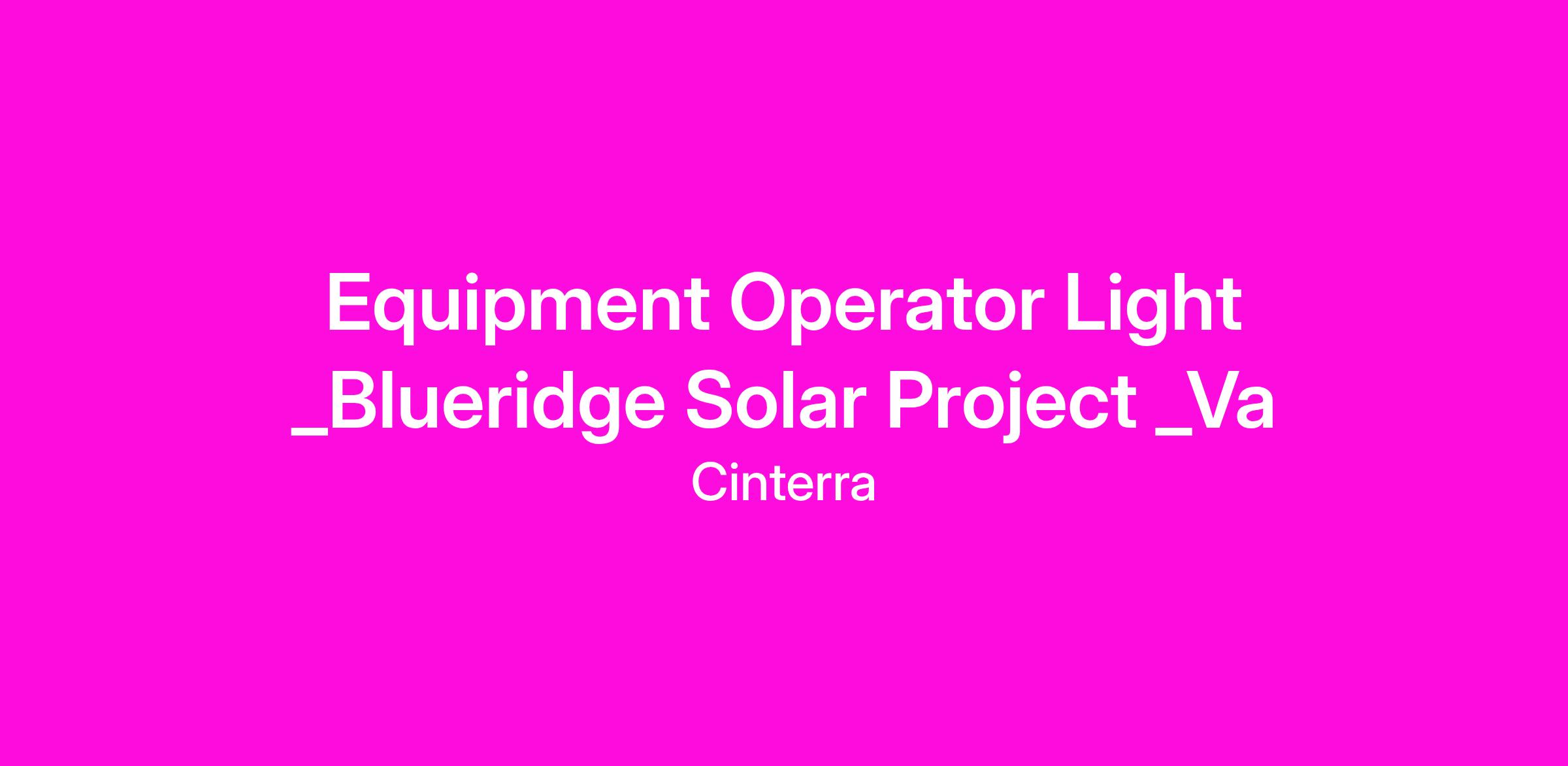 Equipment Operator Light _Blueridge Solar Project _Va
