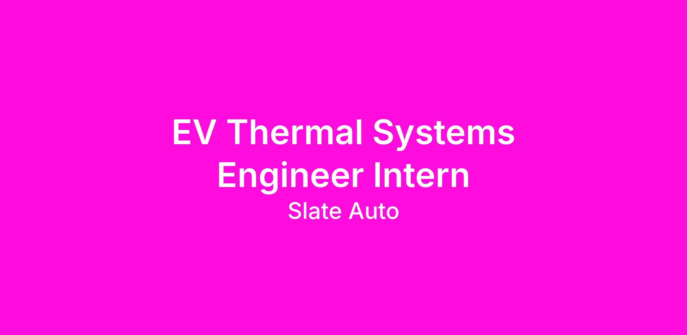 We are seeking a highly skilled EV Thermal Systems Engineer Intern to lead the design, development, and optimization of advanced thermal management systems for next-generation electric vehicles. In this role, you will play a critical part in ensuring optimal temperature control for high-voltage battery packs, power electronics, electric motors, cabin thermal management and other components to maximize performance, safety, battery life, efficiency, and driving range.