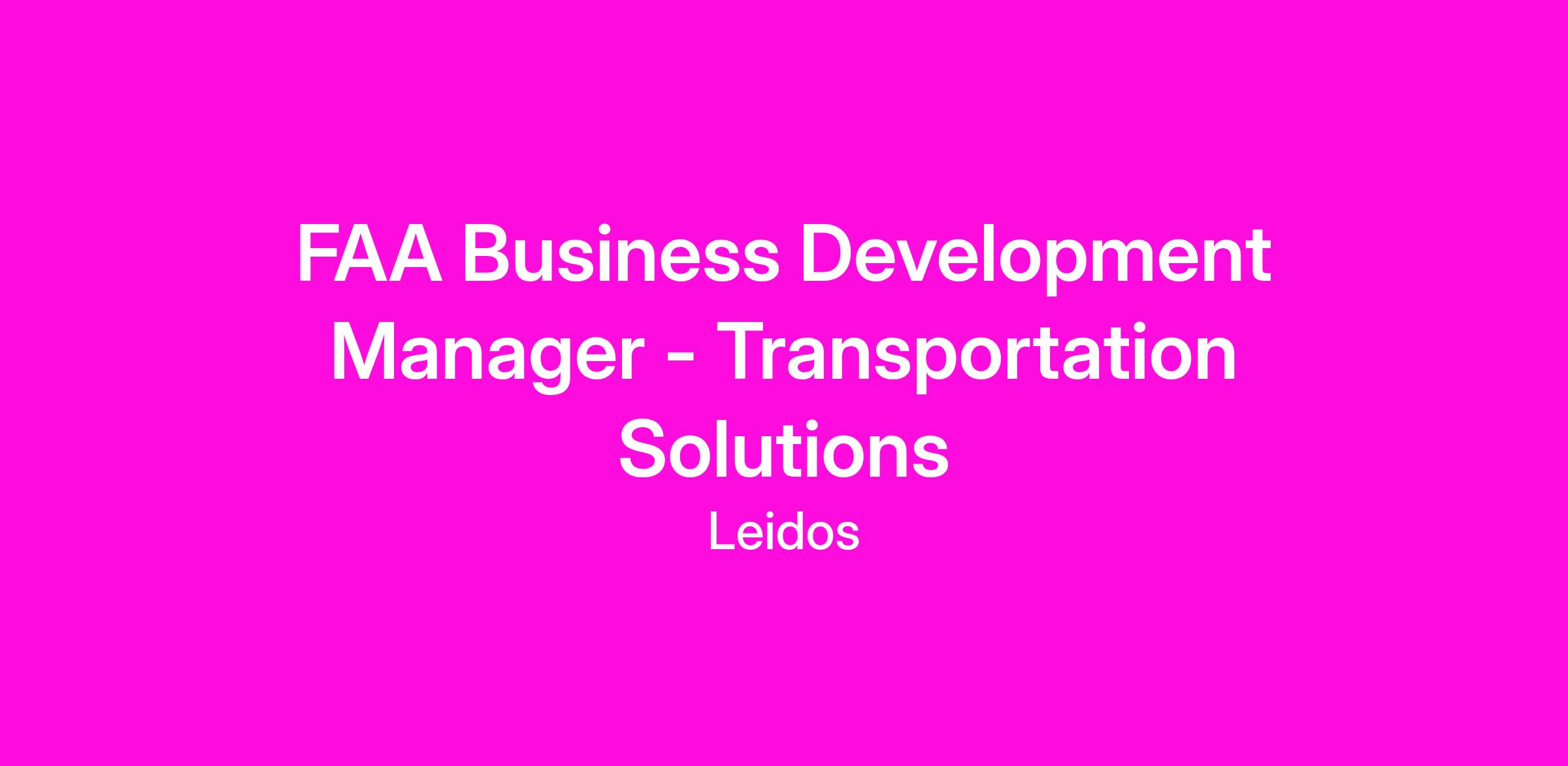 As part of the Leidos Transportation Solutions (TS) Growth Office and Business Development (BD) team is looking for an experienced BD professional with significant domain expertise and experience with the US Federal Aviation Administration (FAA) and related Air Traffic technologies.