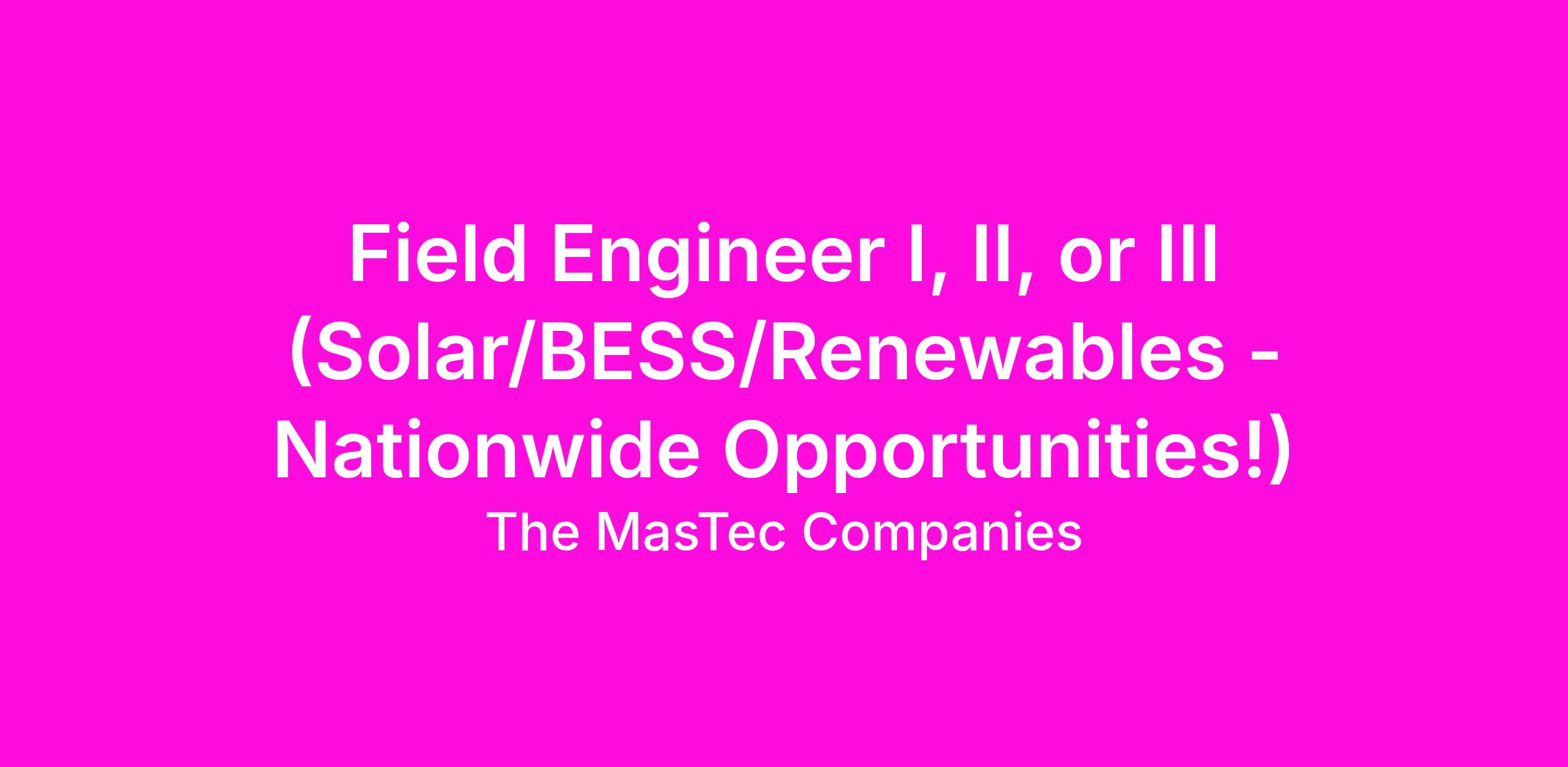 Location & Travel Details: You’ll get the opportunity to travel across the US, helping our team build renewable projects. This is a traveling position, up to 100% of the time. You have the potential to be placed on a project site located in any state throughout the US. You’ll spend 8-12 months on average per project. We offer designated daily per diem in addition to base pay to support and help you cover living expenses. This position is eligible for routine travel home (rotation) from the jobsite. This role is eligible for a monthly vehicle allowance.