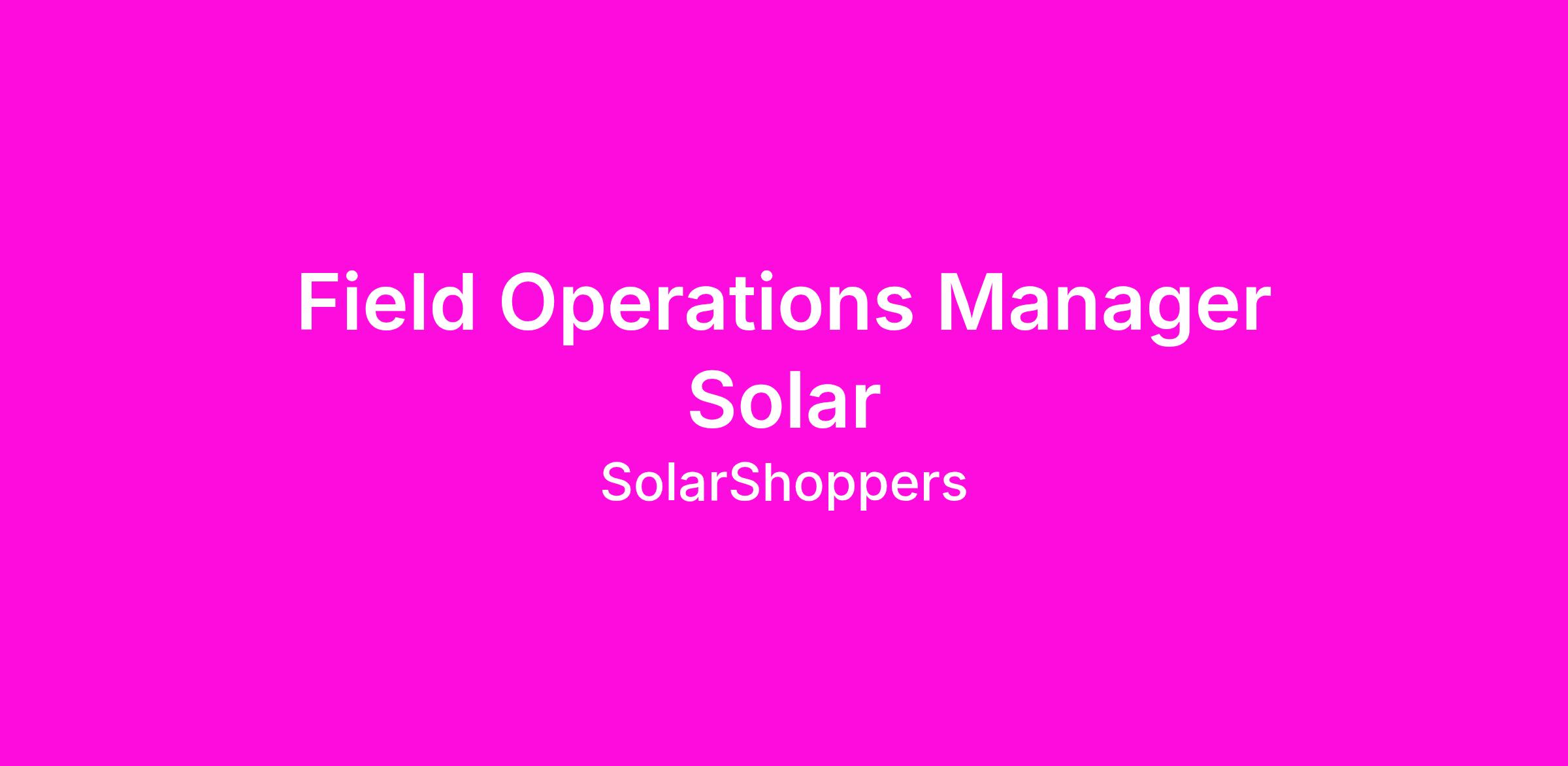 SolarShoppers Voted Best Solar Company is in search of an Experienced Solar Field Operations Manager.