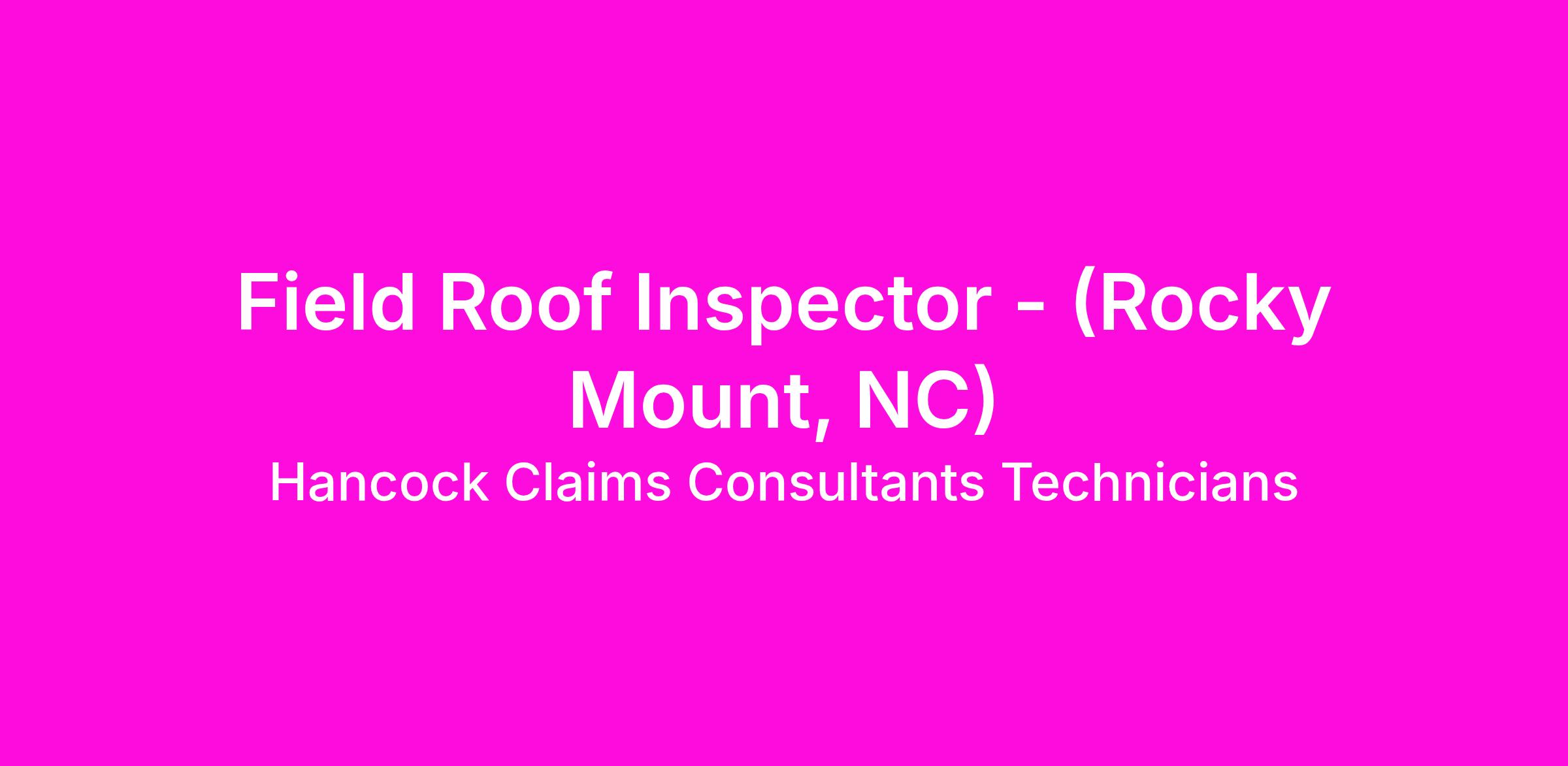 Field Roof Inspector - (Rocky Mount, NC)