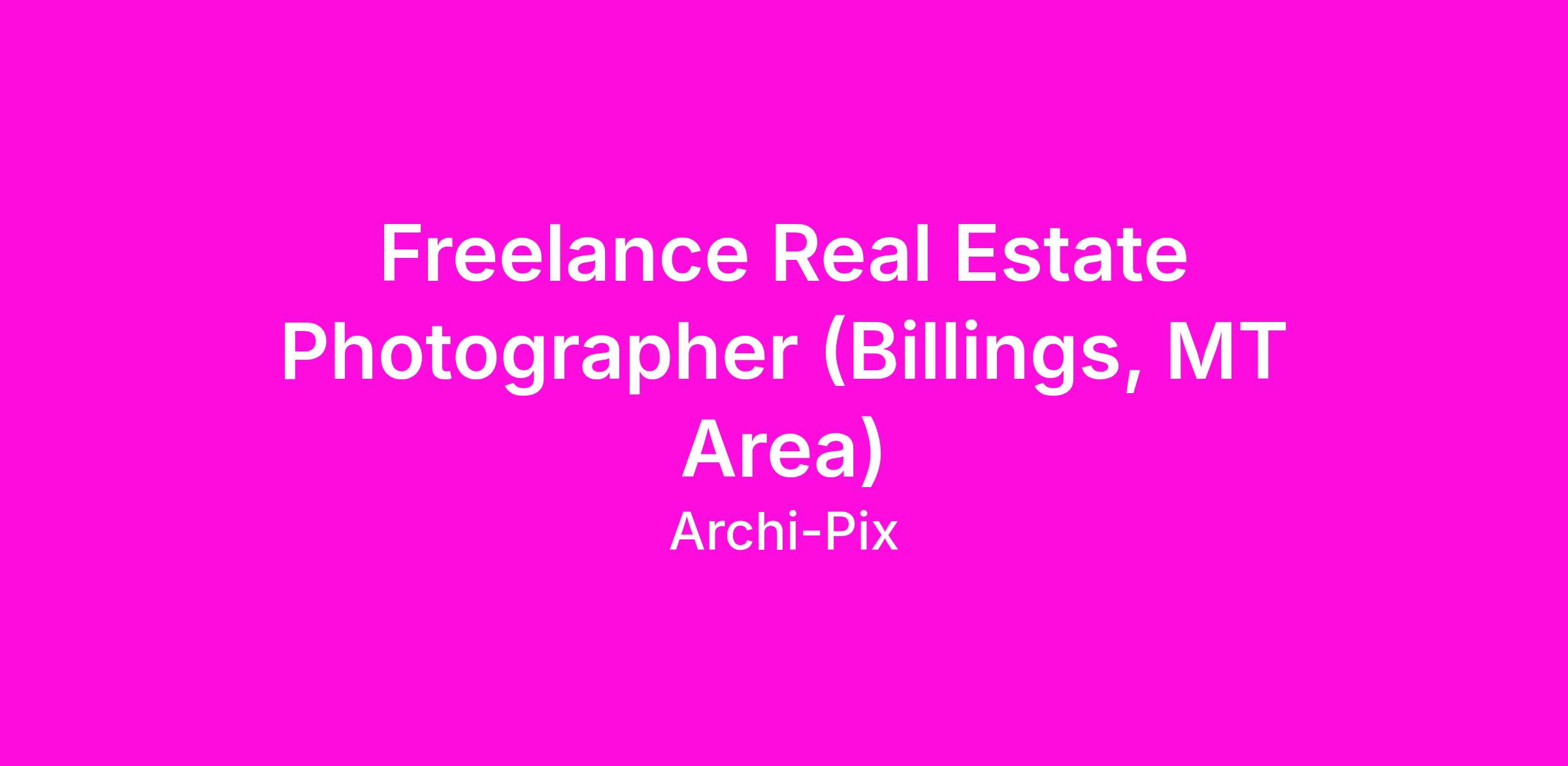 Archi-pix is a real estate media company and we are looking to expand our team of contracted part-time photographers in the Billings, MT area.  Flexible schedule and great pay for motivated individuals. No photo editing required!