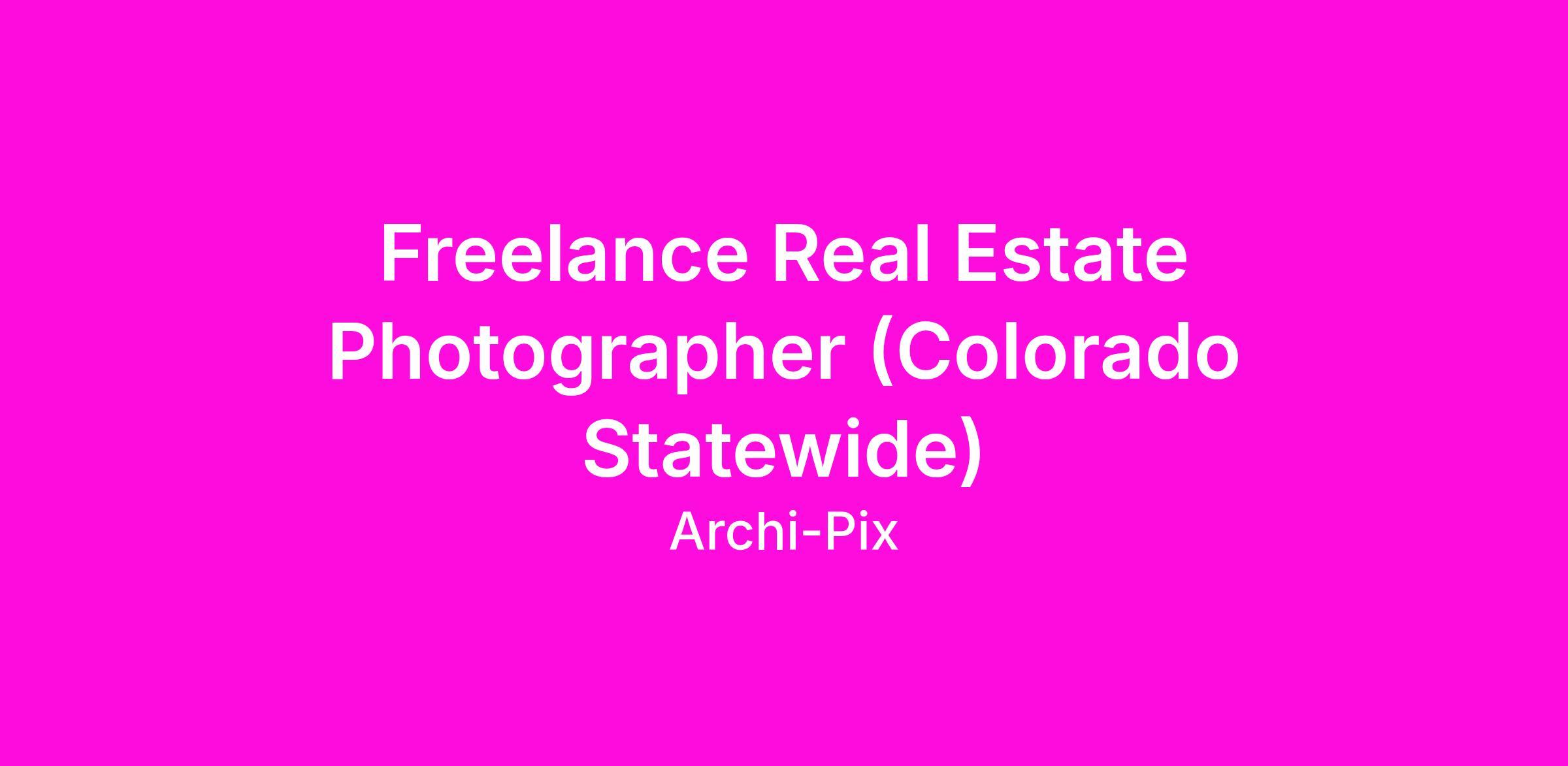 Archi-pix is a real estate media company and we are looking to expand our team of contracted part-time photographers in the state of Colorado.  Flexible schedule and great pay for motivated individuals. No photo editing required!