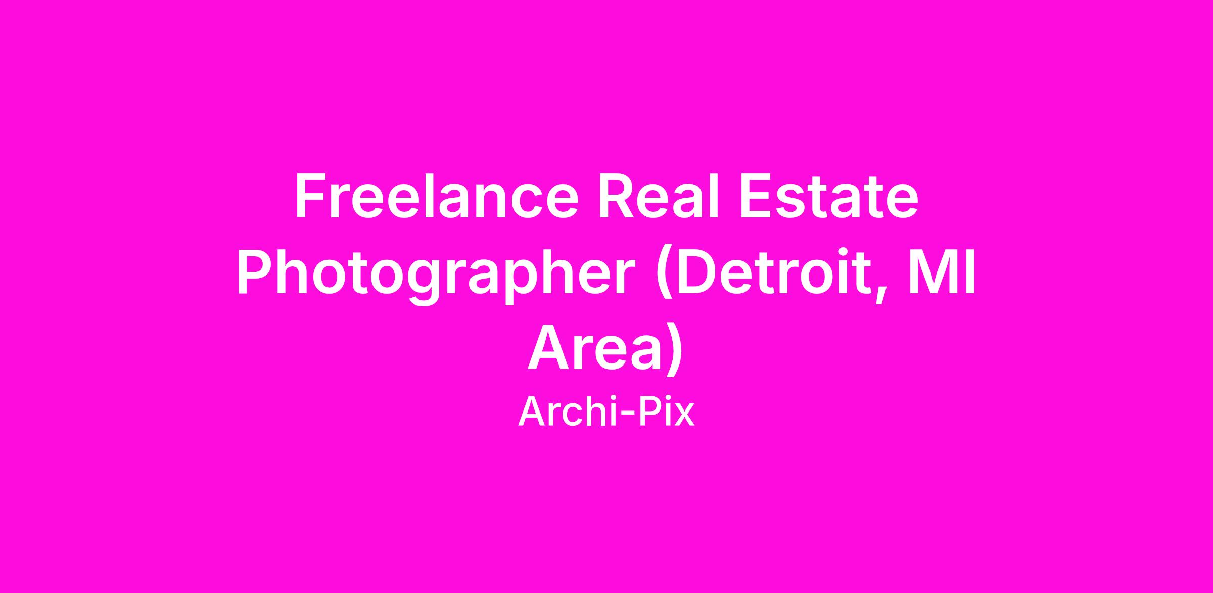 Archi-pix is a real estate media company and we are looking to expand our team of contracted part-time photographers in the Detroit, MI area. Flexible schedule and great pay for motivated individuals. No photo editing required! If you are looking for a position as a professional photographer, this could be the job for you. No need to have previous real estate photography experience. Photographers are paid by the shoot. Typical pay range is $60 - $200 per shoot (depends on photography package ordered by client and can be higher than $200 at times) and each appointment typically takes an hour or less. Photographers may have as many as 4-5 appointments per day. Photographer Requirements: