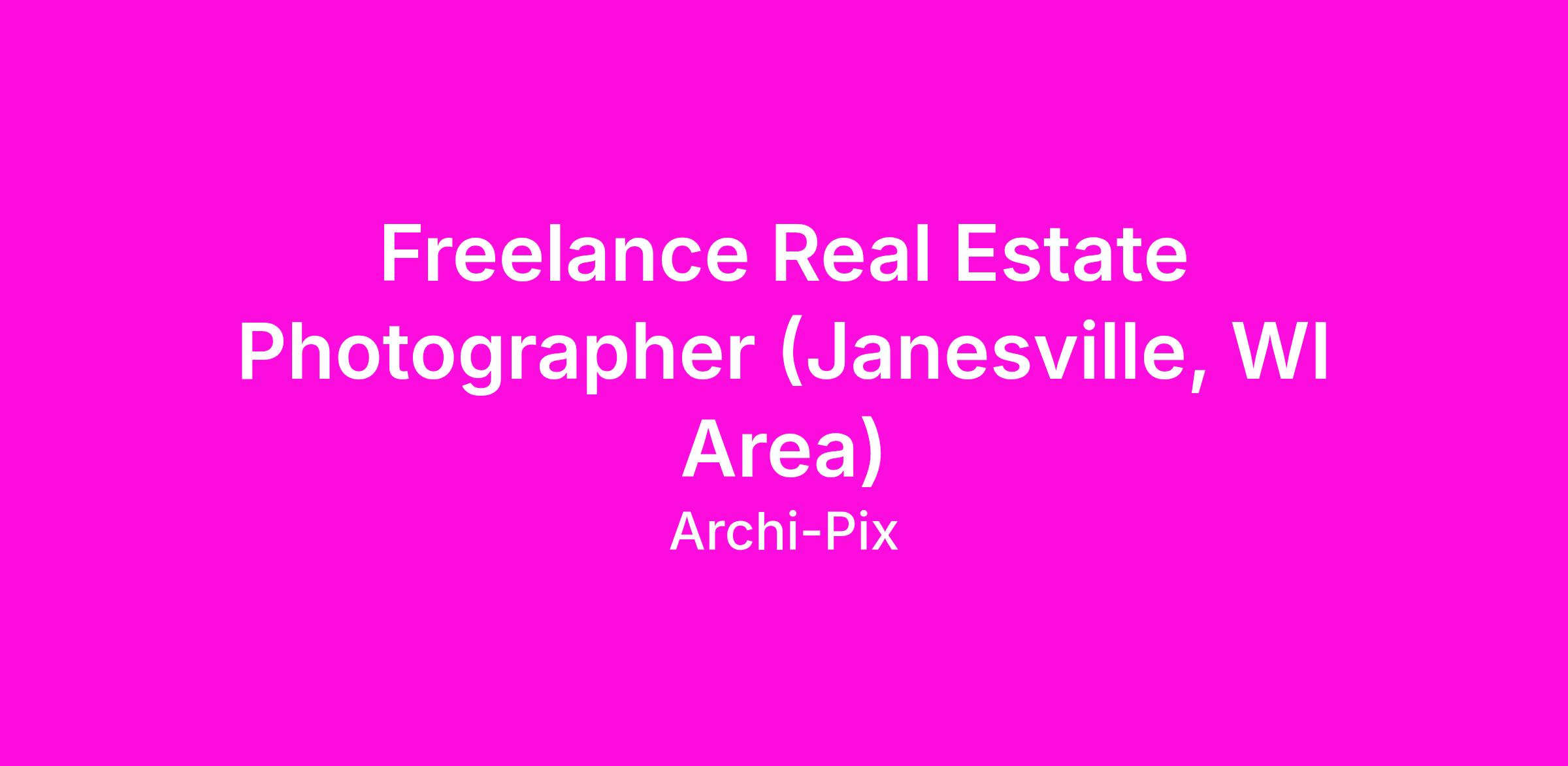 Archi-pix is a real estate media company and we are looking to expand our team of contracted part-time photographers in the Janesville, WI. Flexible schedule and great pay for motivated individuals. No photo editing required! If you are looking for a position as a professional photographer, this could be the job for you. No need to have previous real estate photography experience. Photographers are paid by the shoot. Typical pay range is $60 - $200 per shoot (depends on photography package ordered by client and can be higher than $200 at times) and each appointment typically takes an hour or less. Photographers may have as many as 4-5 appointments per day. Photographer Requirements: