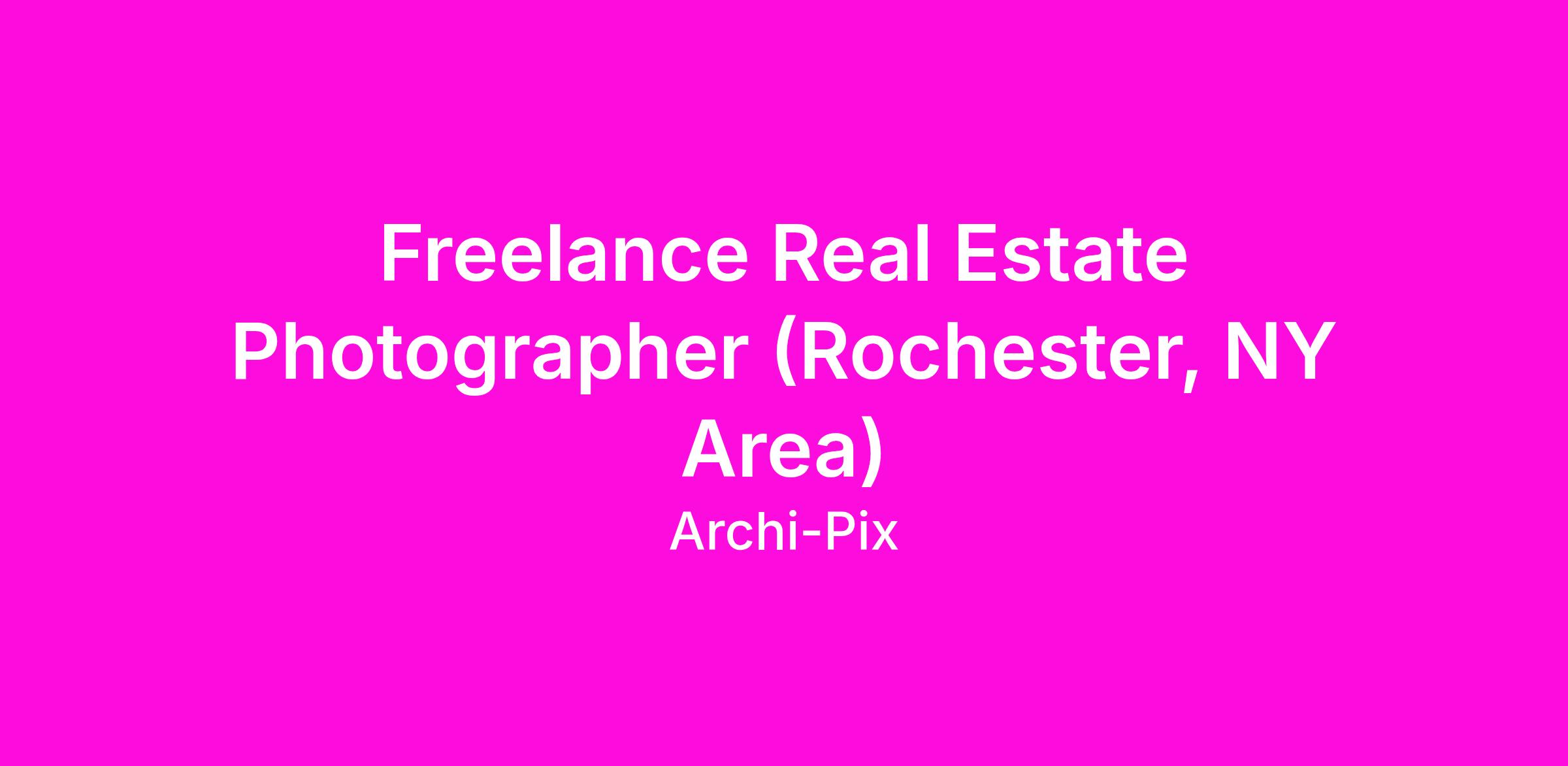 Archi-pix is a real estate media company and we are looking to expand our team of contracted part-time photographers in the Rochester, NY area. Flexible schedule and great pay for motivated individuals. No photo editing required! If you are looking for a position as a professional photographer, this could be the job for you. No need to have previous real estate photography experience. Photographers are paid by the shoot. Typical pay range is $60 - $200 per shoot (depends on photography package ordered by client and can be higher than $200 at times) and each appointment typically takes an hour or less. Photographers may have as many as 4-5 appointments per day. Photographer Requirements:
