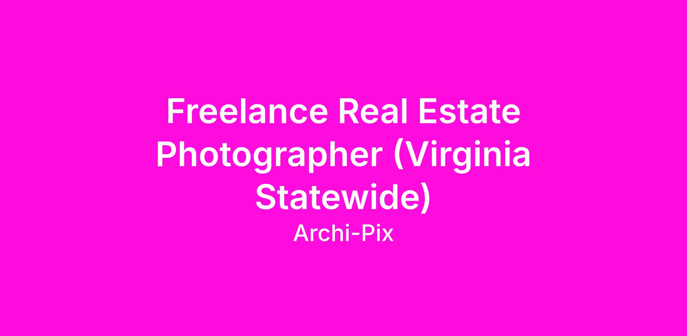 Archi-pix is a real estate media company and we are looking to expand our team of contracted part-time photographers in the state of Virginia. Flexible schedule and great pay for motivated individuals. No photo editing required! If you are looking for a position as a professional photographer, this could be the job for you. No need to have previous real estate photography experience. Photographers are paid by the shoot. Typical pay range is $60 - $200 per shoot (depends on photography package ordered by client and can be higher than $200 at times) and each appointment typically takes an hour or less. Photographers may have as many as 4-5 appointments per day. Photographer Requirements: