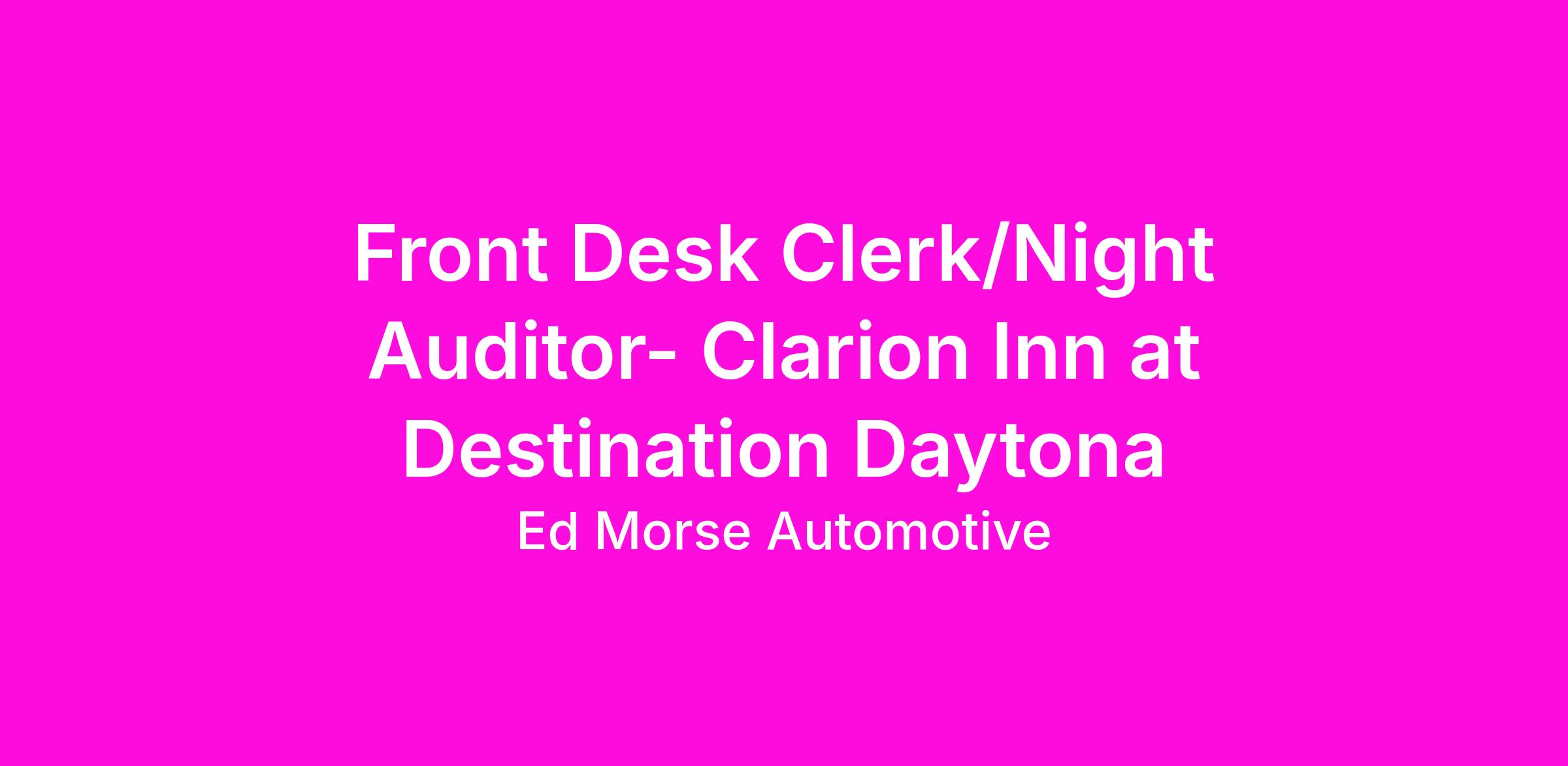 Teddy Morseโ€™s Daytona Harley-Davidson, part of the Ed Morse Automotive Group, is currently seeking a Full Time Front Desk Clerk/Night Auditor at the Clarion Inn at Destination Daytona.