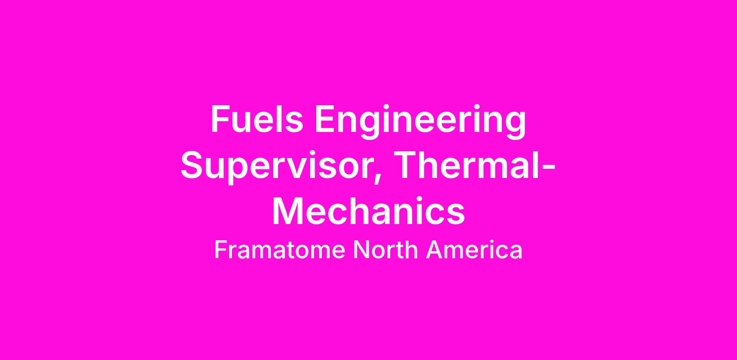 Fuels Engineering Supervisor, Thermal-Mechanics