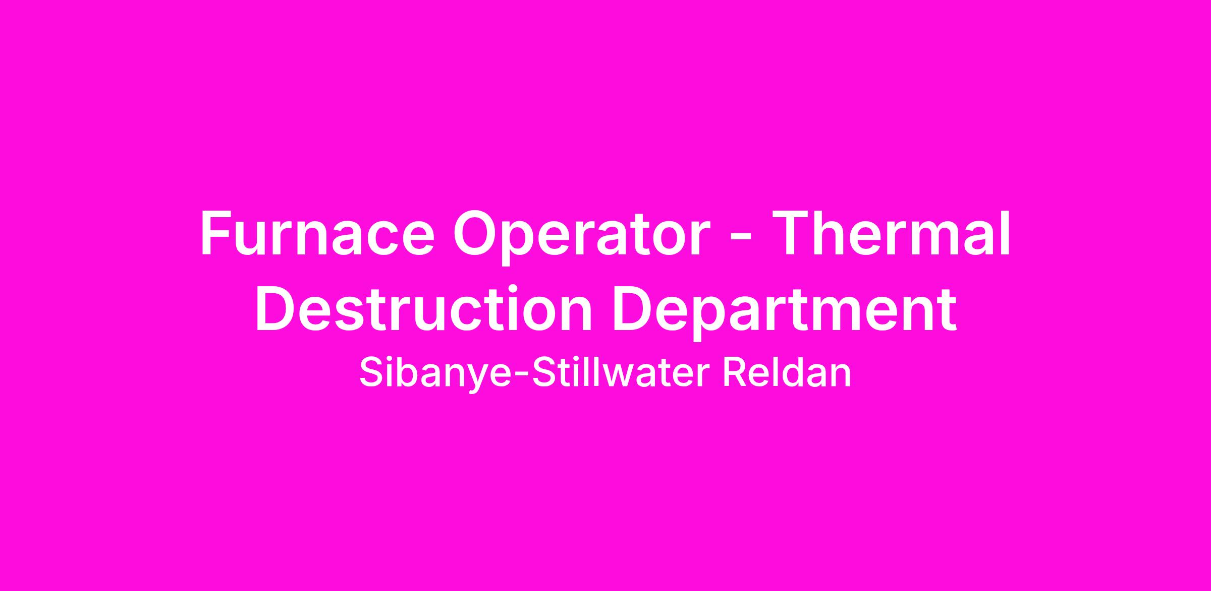 Sibanye-Stillwater is seeking a skilled and safety-focused Furnace Operator to support metal melting operations within the Thermal Destruction Department. This hands-on role focuses on operating and monitoring furnaces used to melt non-ferrous metals while ensuring all production, quality, and safety standards are consistently met in a high-temperature industrial environment.