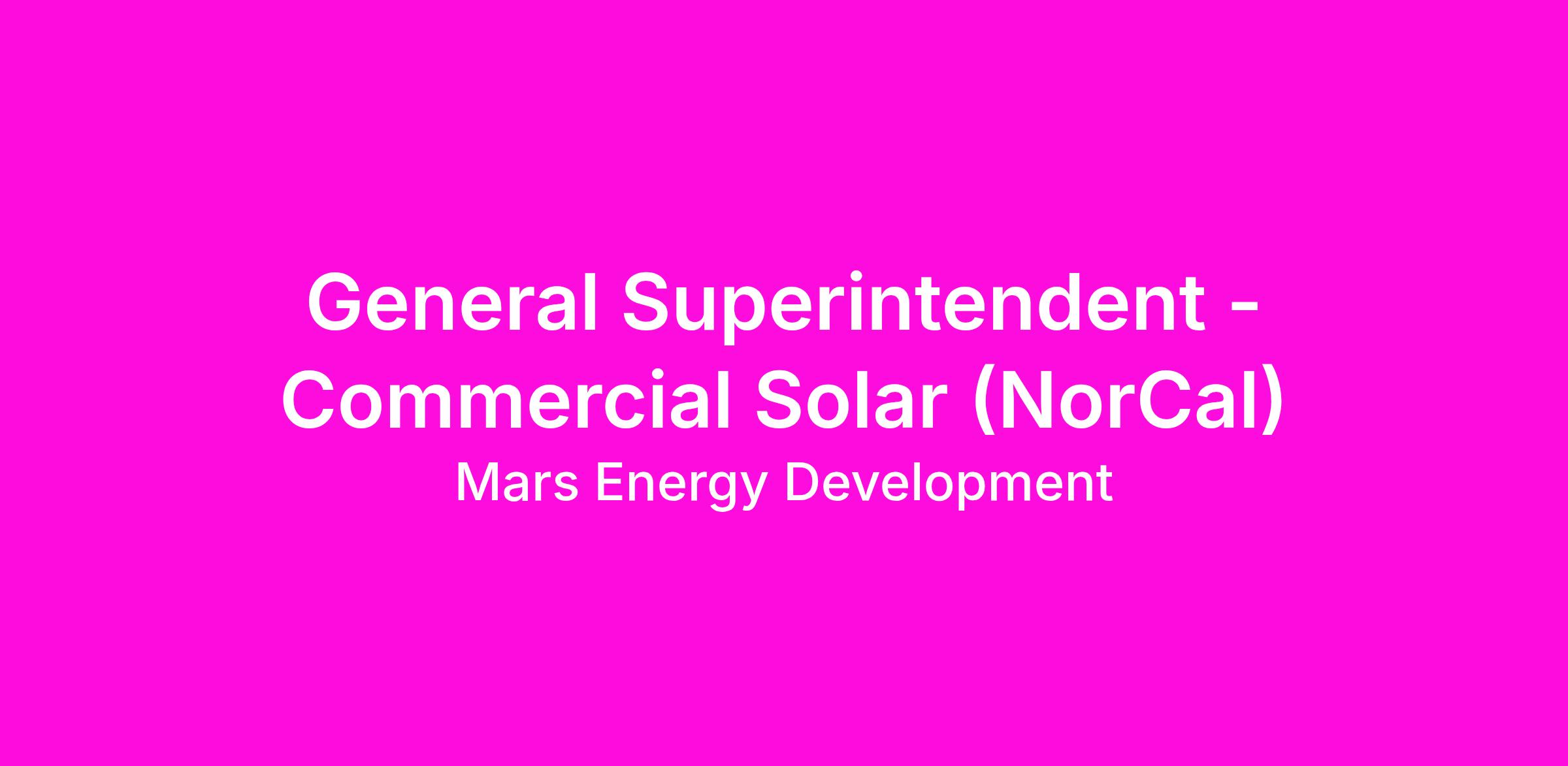MARS Energy Solutions is seeking an experienced General Superintendent to lead field operations on commercial-scale public works solar projects. This role oversees multiple job sites and ensures projects are completed safely, on time, and within budget while maintaining high construction quality standards.