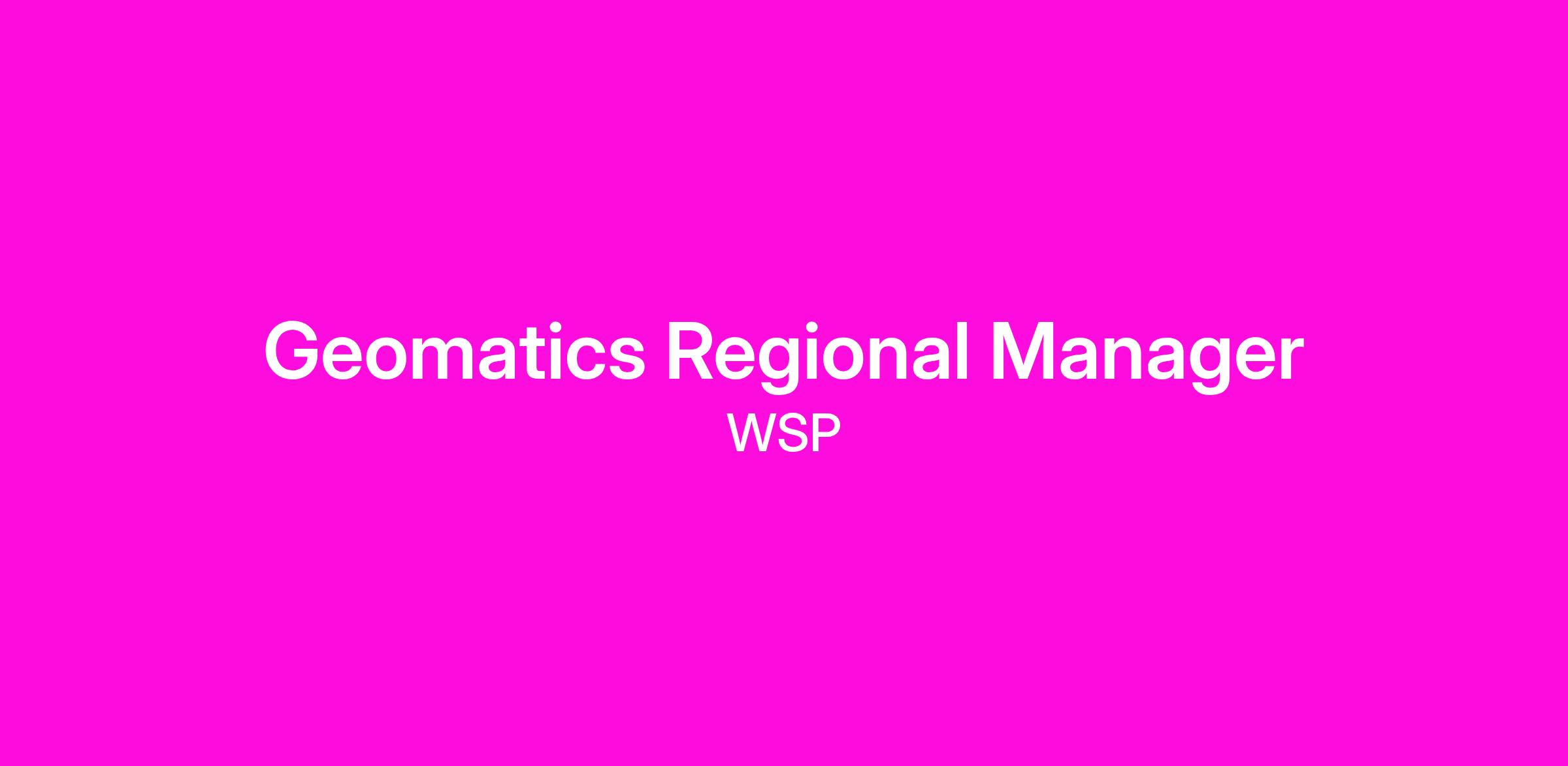 DescriptionWSP is searching for a Geomatics Regional Manager to lead the west-central region out of our Tampa, FL office!