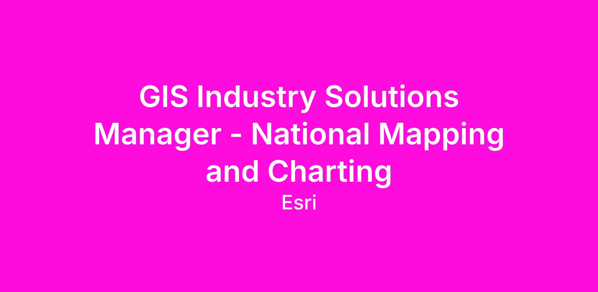 - Engage other teams within Esri (marketing, sales, products, professional services, international distributors, education, and partner teams) on all national mapping and charting issues