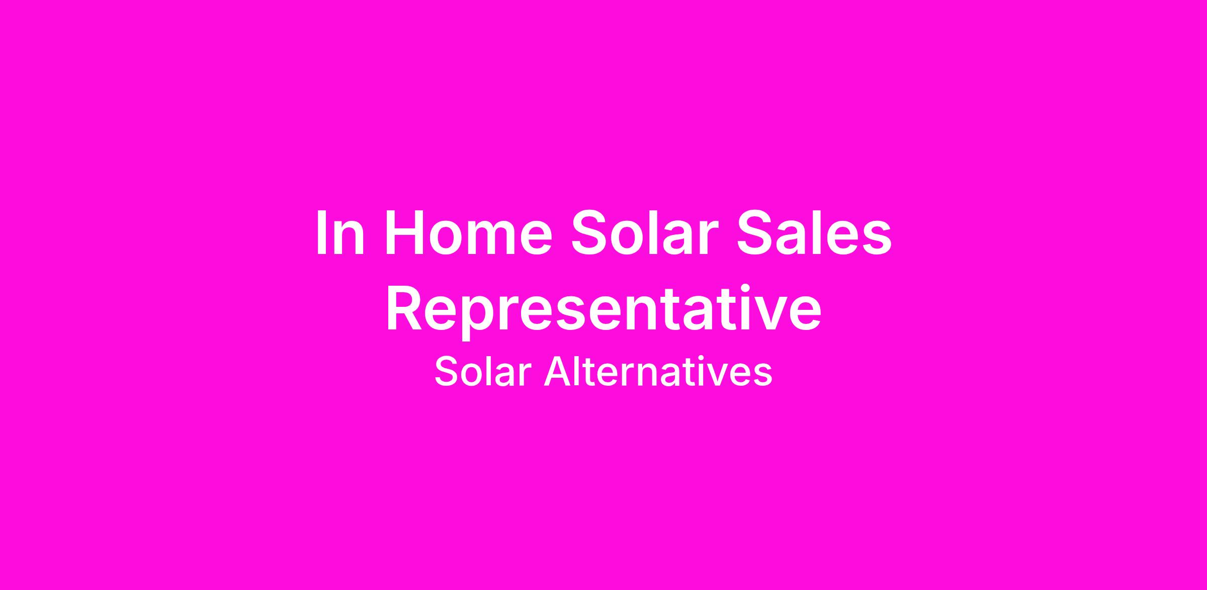 DescriptionJoin the clean energy revolution! Solar Alternatives, the Louisiana's leading renewable energy company, is seeking an experienced sales consultant and one-call closer for remote, in-home and in-business sales for North Louisiana regional market. Target clients are nearby residential and commercial prospects in Mississippi. Excellent earning potential of $100k-$160k annually.