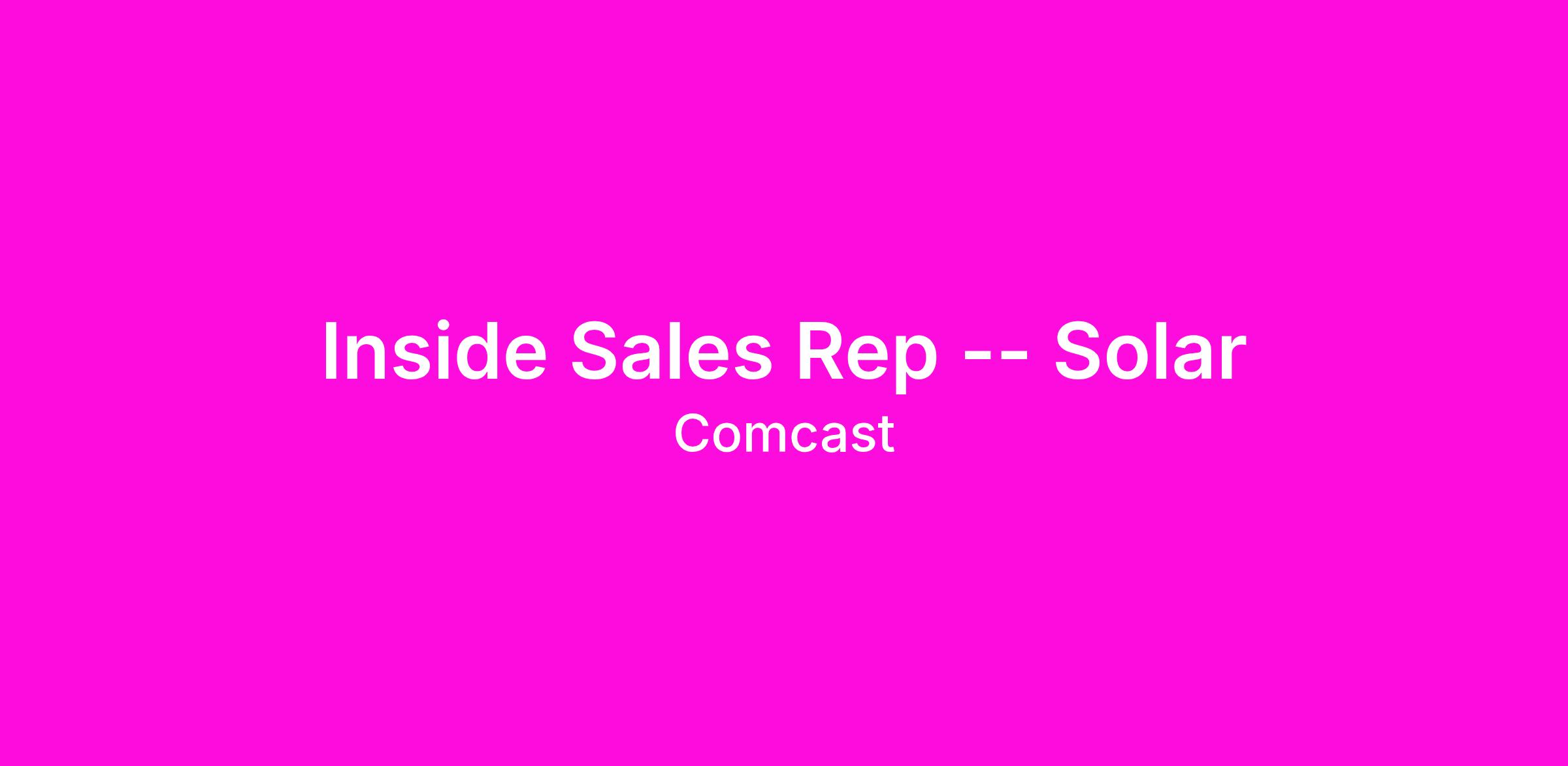 Solar Energy World—now a wholly owned Comcast company—is expanding rapidly and looking for hardworking, results-oriented Inside Sales Representatives to support our growing DMV market. This role is designed for individuals who want to prove themselves, master the fundamentals of sales, and earn a clear pathway into Outside Sales.Job Description