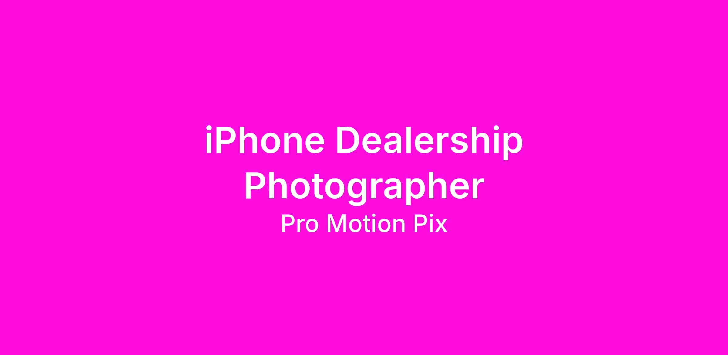 Pro-MotionPix is hiring a part-time Automotive Dealership Photographer to capture high-quality photos, 360° spins, and videos of vehicles for sale using a company-issued iPhone.