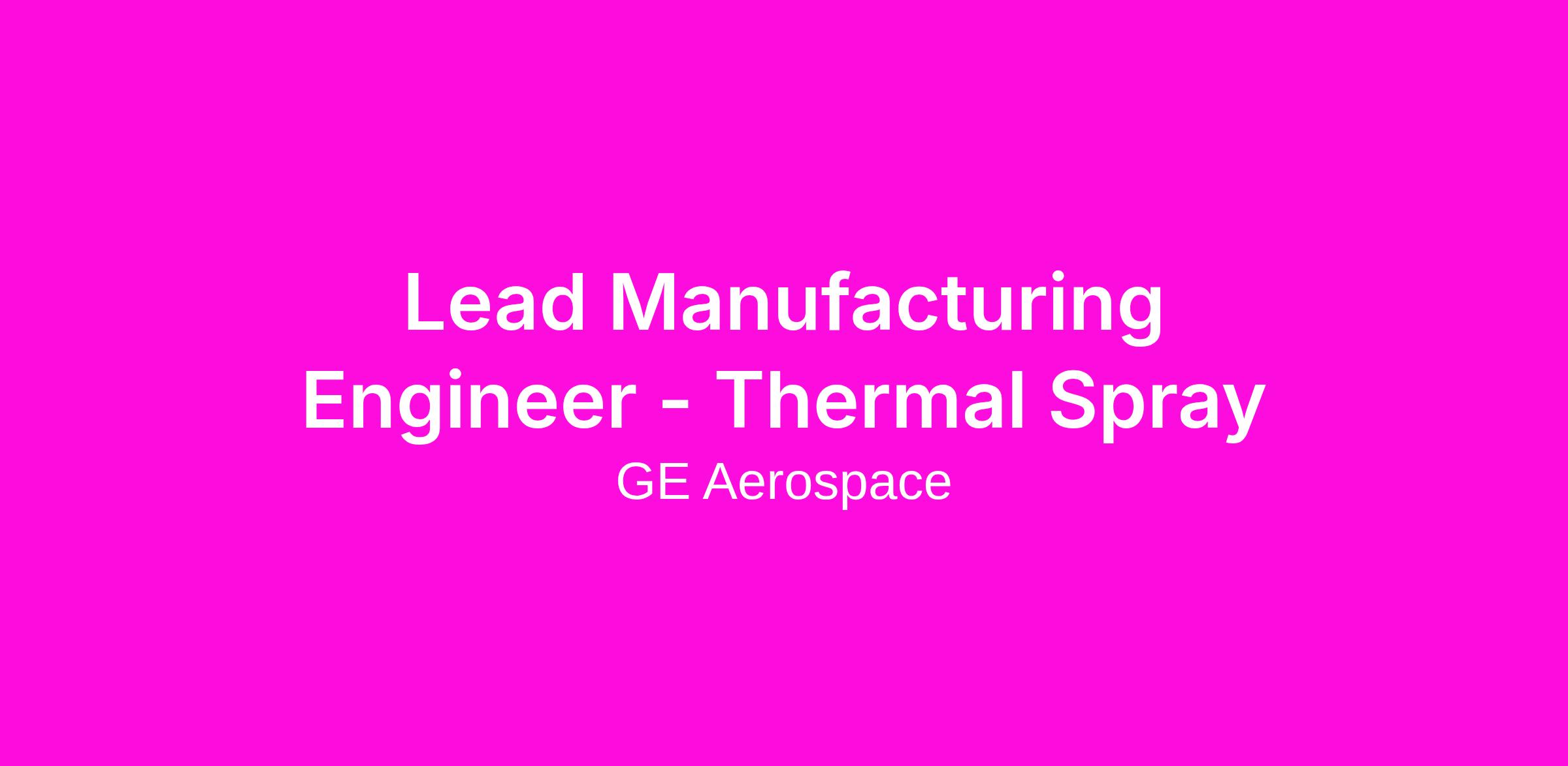 Thermal Spray Experience in a manufacturing environment required.