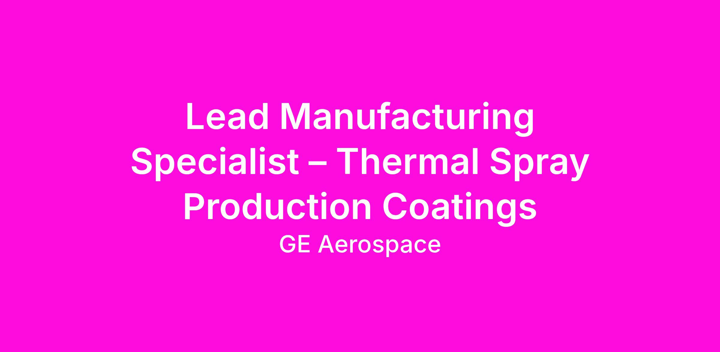 - Advances the technology of thermal spray internally within GE Aerospace and outside in the broader community.